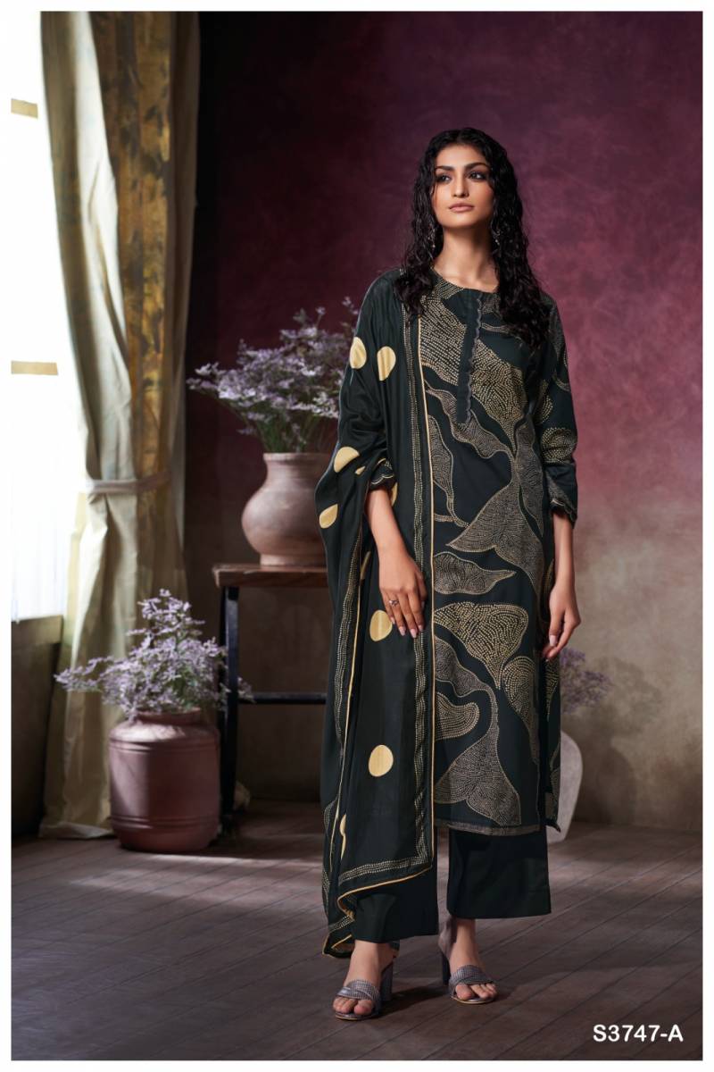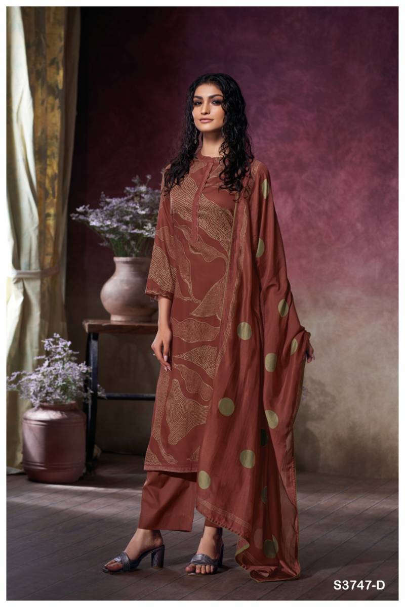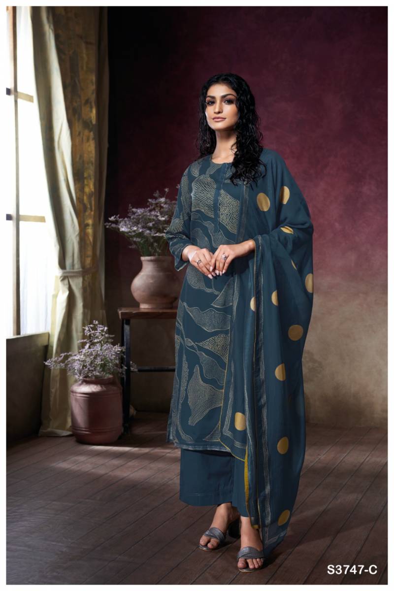 Buy Ganga Preska cotton satin designer salwar suits at wholesale rate.