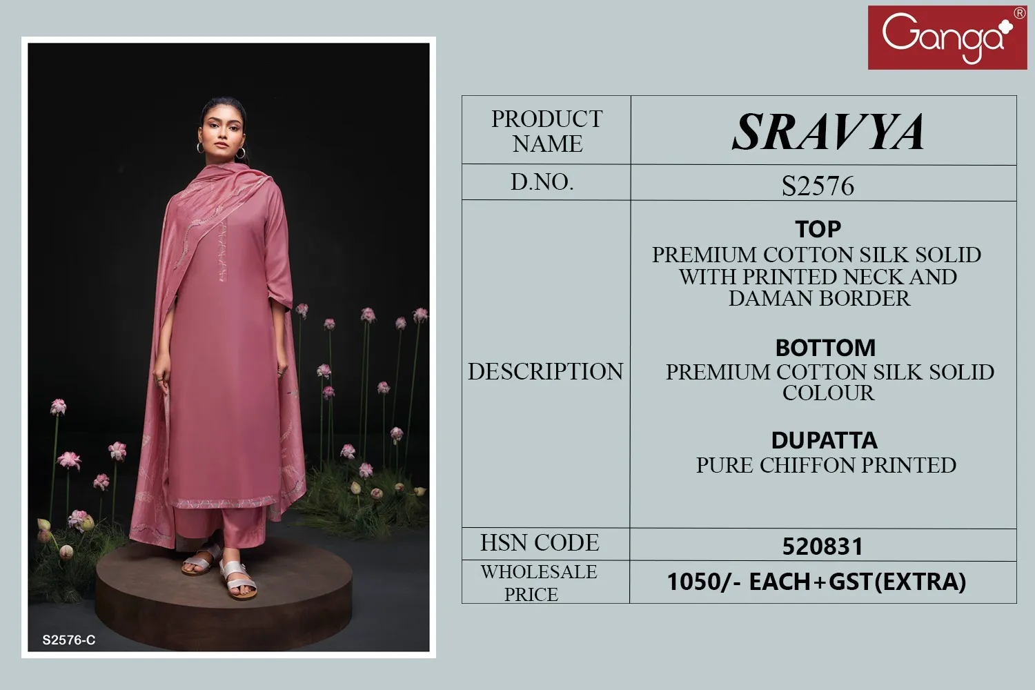 Ganga S2576 Sravya Premium Cotton Silk Salwar Suit Collection