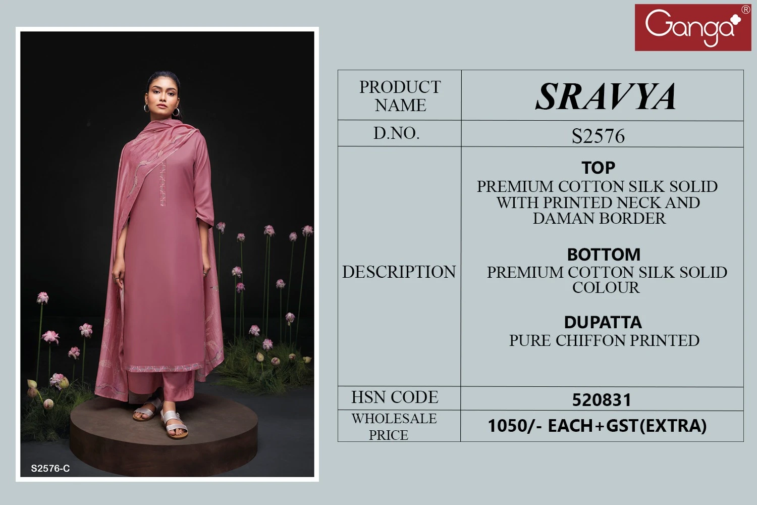 Ganga S2576 Sravya Premium Cotton Silk Wholesale Fancy Salwar Suit Catalog
