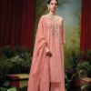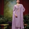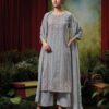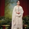 GANGA presents SAHASWARA, a refined 3-piece set that combines the beauty of traditional craftsmanship with modern design elements. The top is made from premium handloom cotton Jacquard fabric in a solid color, offering a rich texture that exudes elegance. Intricate embroidery and lace detailing on the neck, daman, and lace add a delicate touch, elevating the overall aesthetic.