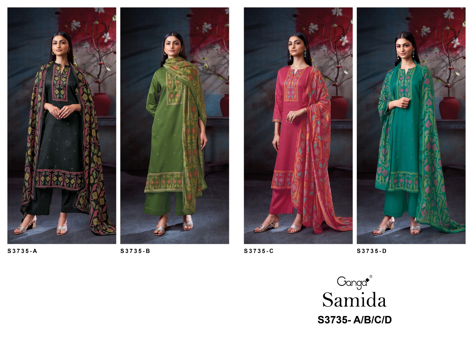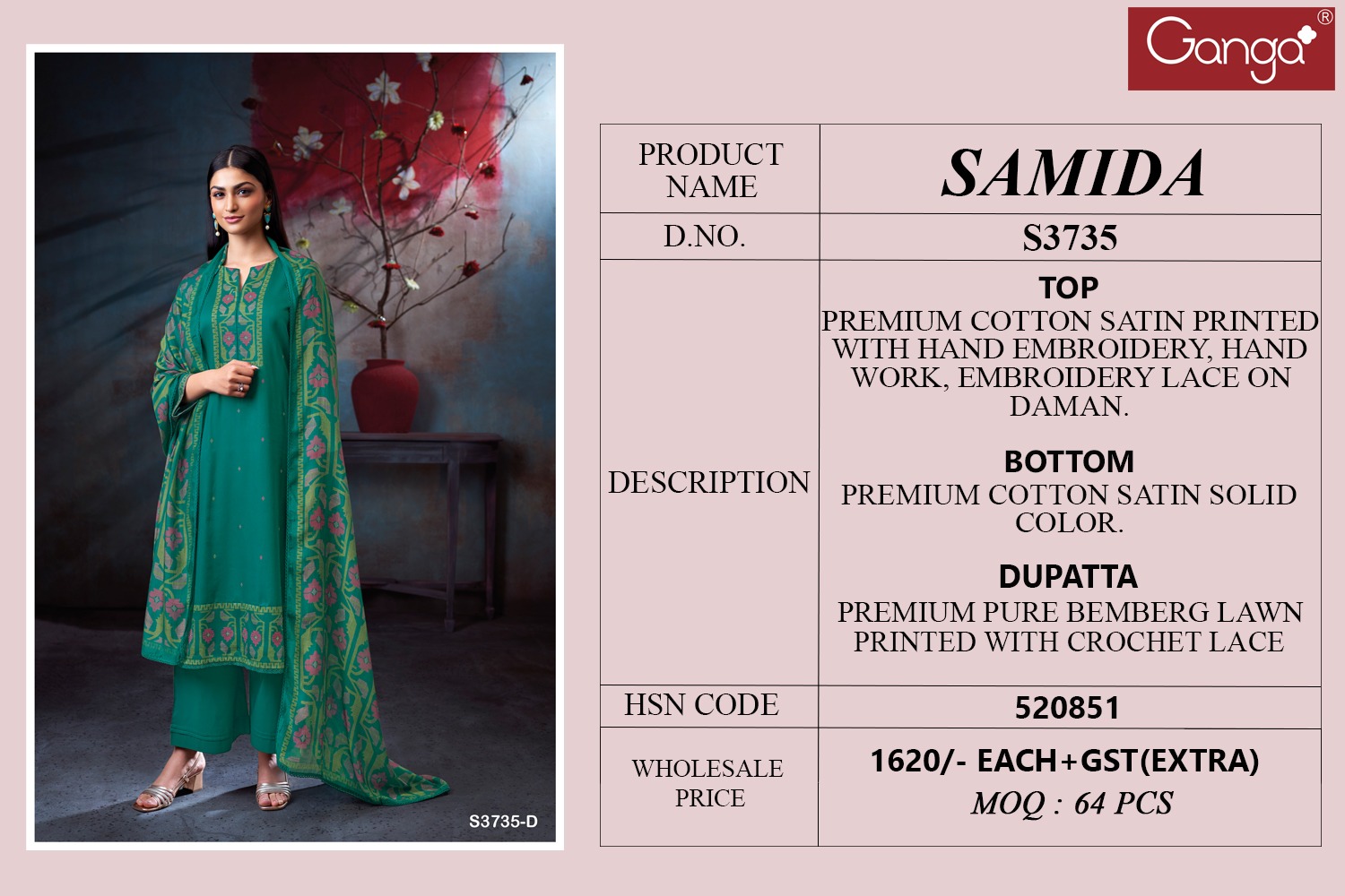 Buy Ganga Samida 3735 premium cotton satin salwar suits at wholesale rate.