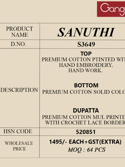 Ganga Sanuthi 3649 Premium Cotton Printed Wholesale Dress Material
