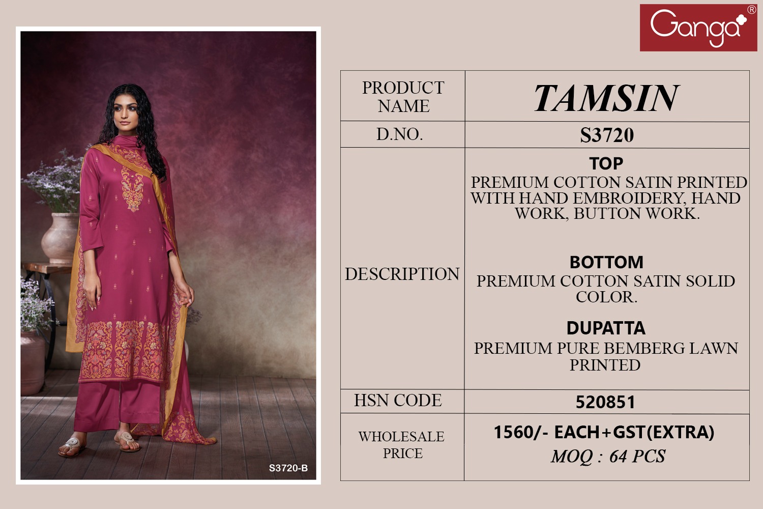 Shop Ganga Tamsin 3720 – a premium salwar kameez collection in cotton satin and Bemberg lawn.