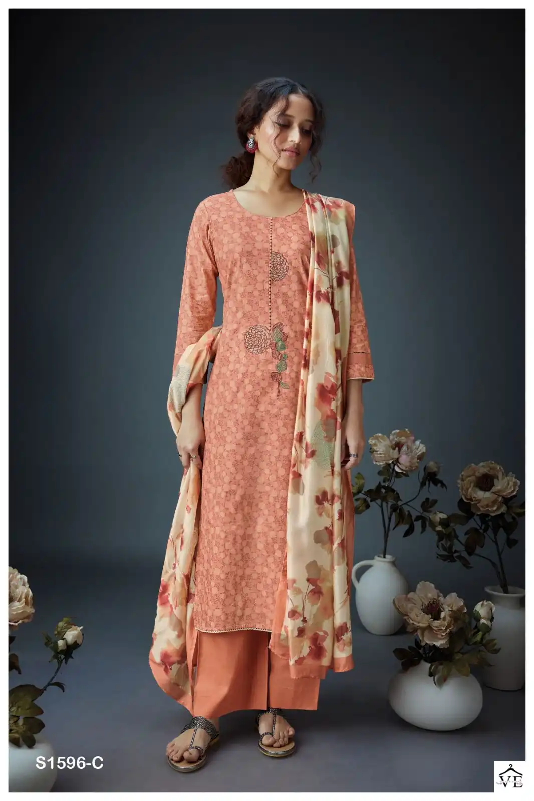 Ganga Upasna 1596 Premium Cotton Wholesale Salwar Suit Catalog of 4 Pcs. We deal in Kurtis, Sarees, Dresses Materials, Leggings, and Designer Salwar Kameez.