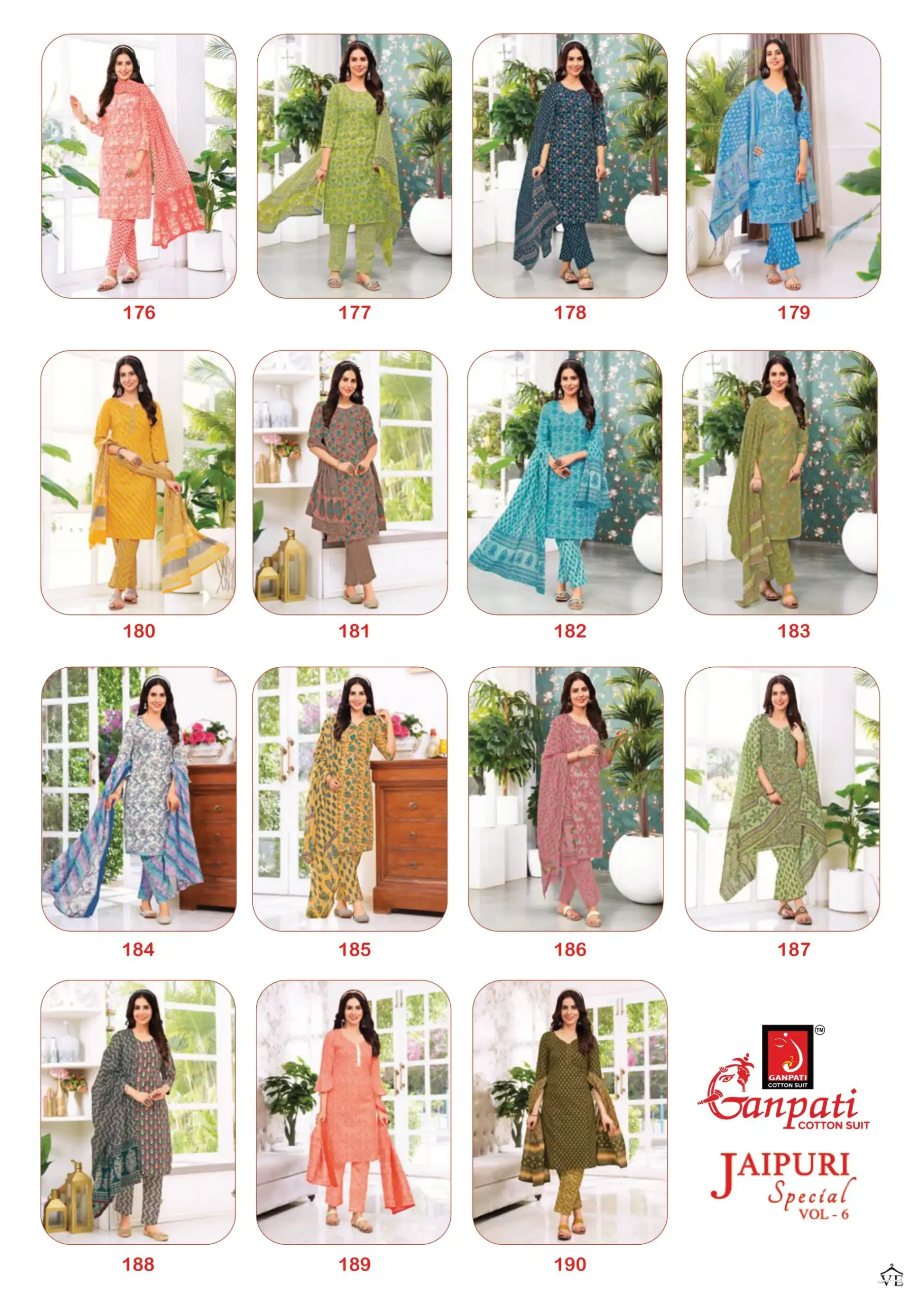 Ganpati Jaipuri Special Vol 6 Cotton Wholesale Regular Wear Salwar Suit Catalog 15 Pcs. We deal in Kurtis, Sarees, Dresses Materials, Leggings, and Designer Salwar Kameez.