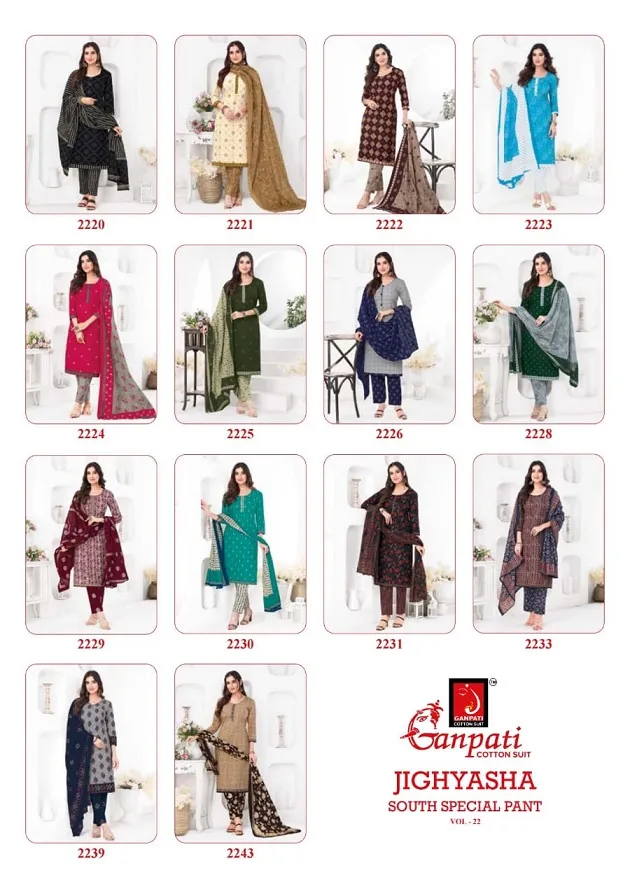 Ganpati Jighyasha Pant Style Vol 22 Cotton Wholesale Salwar Suit Collection