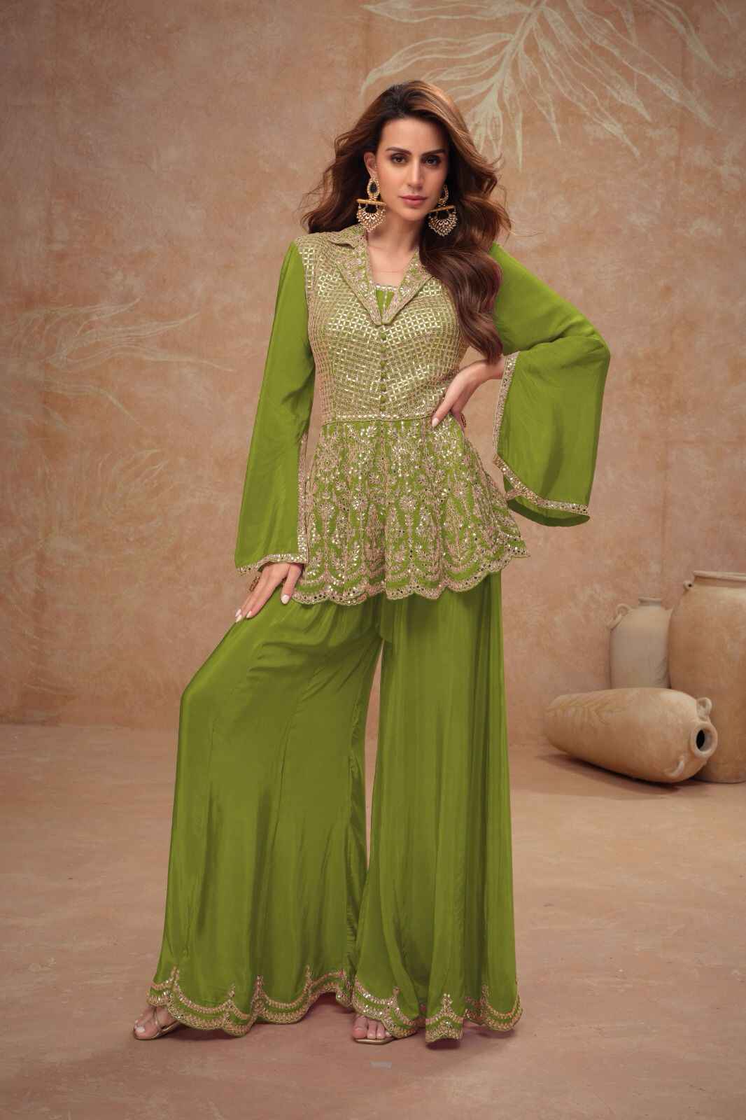 - Top: Premium Real Chinon fabric with elegant front and back embroidery work