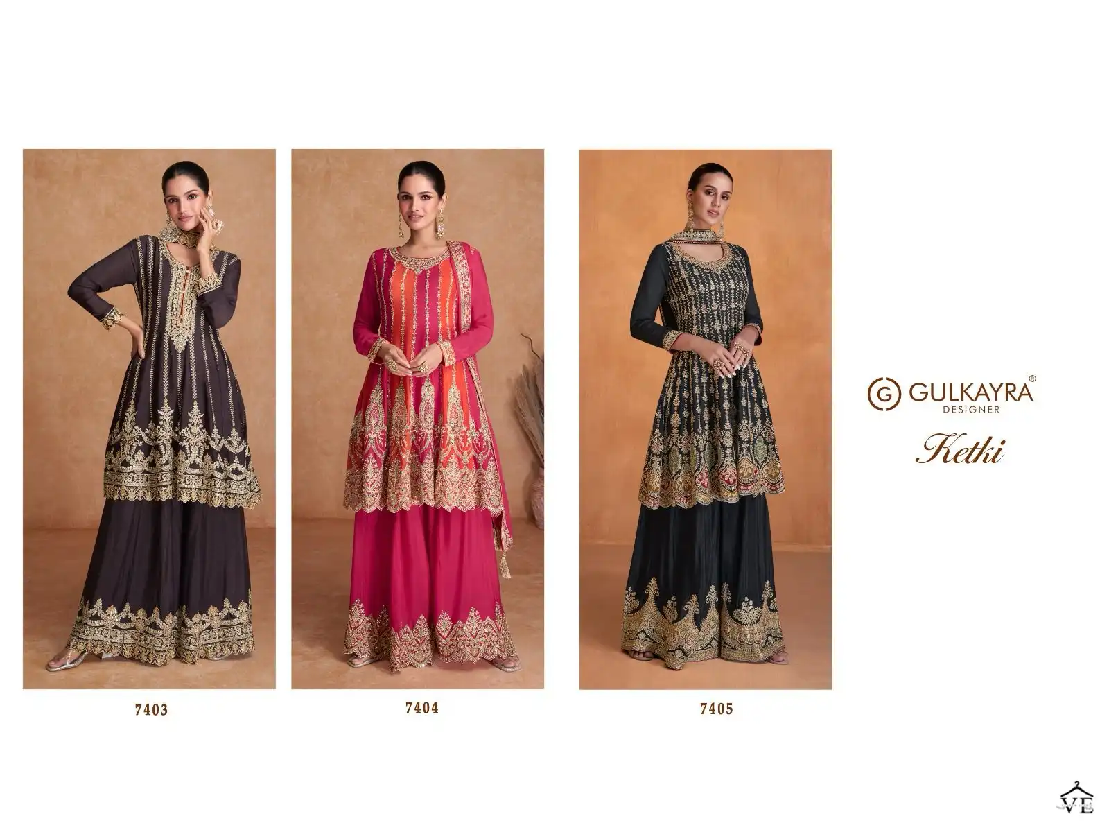 Gulkayra Ketki Real Chinon Wholesale Readymade Designer Suit Catalog of 3 Pcs. We deal in Kurtis, Sarees, Dresses Materials, Leggings, and Designer Salwar Kameez.