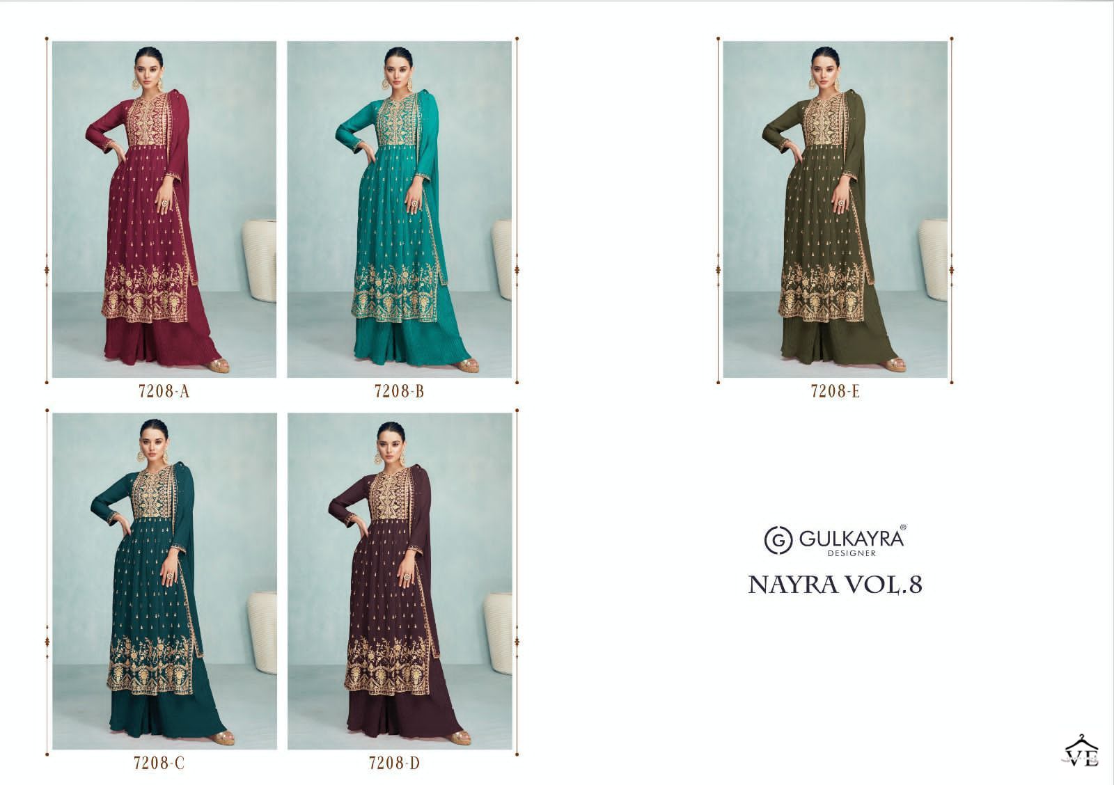Gulkayra Nayra Vol 8 Georgette Wholesale Designer Readymade Salwar Suit Catalog 5 Pcs. We deal in Kurtis, Sarees, Dresses Materials, Leggings, and Designer Salwar Kameez.