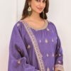 - The consistent use of Real Simar Silk across all three pieces ensures a coordinated, rich look with excellent fall and comfort. Fine embroidery enhances the overall elegance, making it suitable for both daytime and evening occasions.