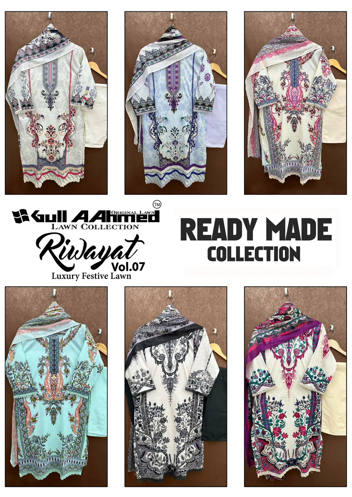Gull Aahmed Riwayat Vol 7 Cotton Wholesale Pakistani Redymade Salwar Suit Collection