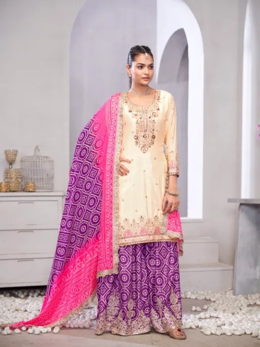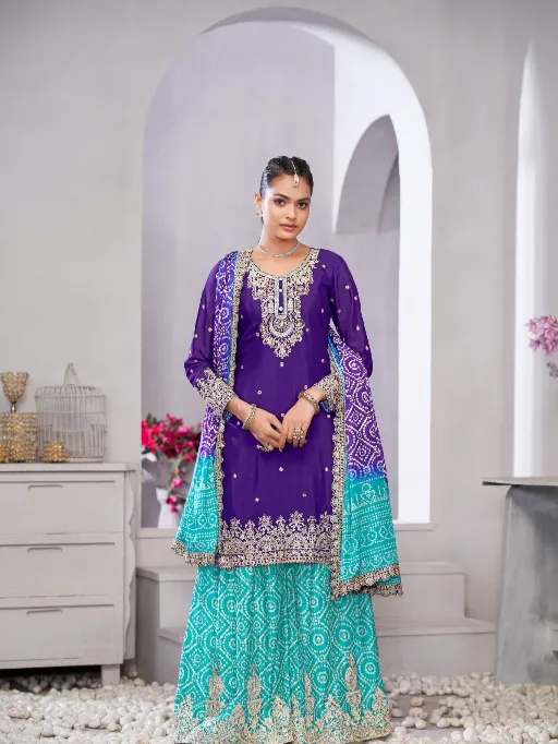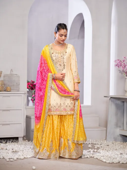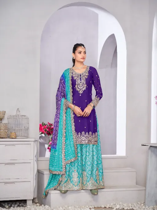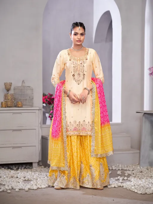 Gulzar D.No 2221–2223 Premium Chinnon Sharara Suit Wholesale Catalog.
