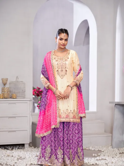 Gulzar D.No 2221–2223 Premium Chinnon Sharara Suit Wholesale Catalog
