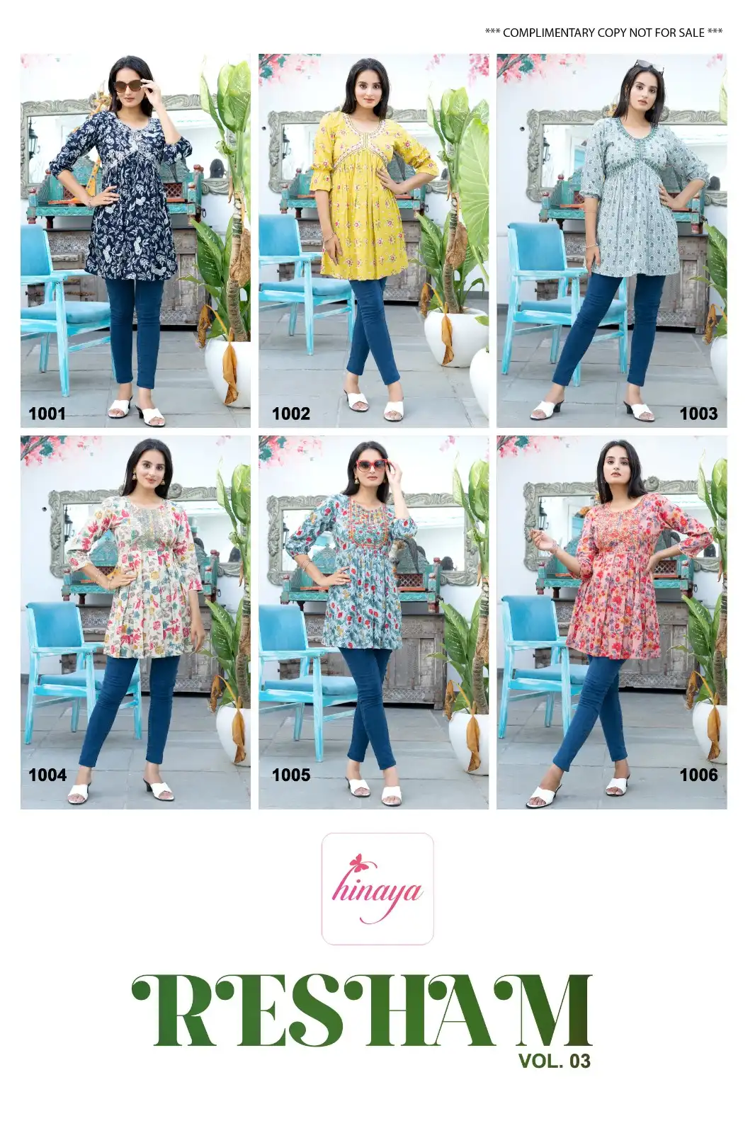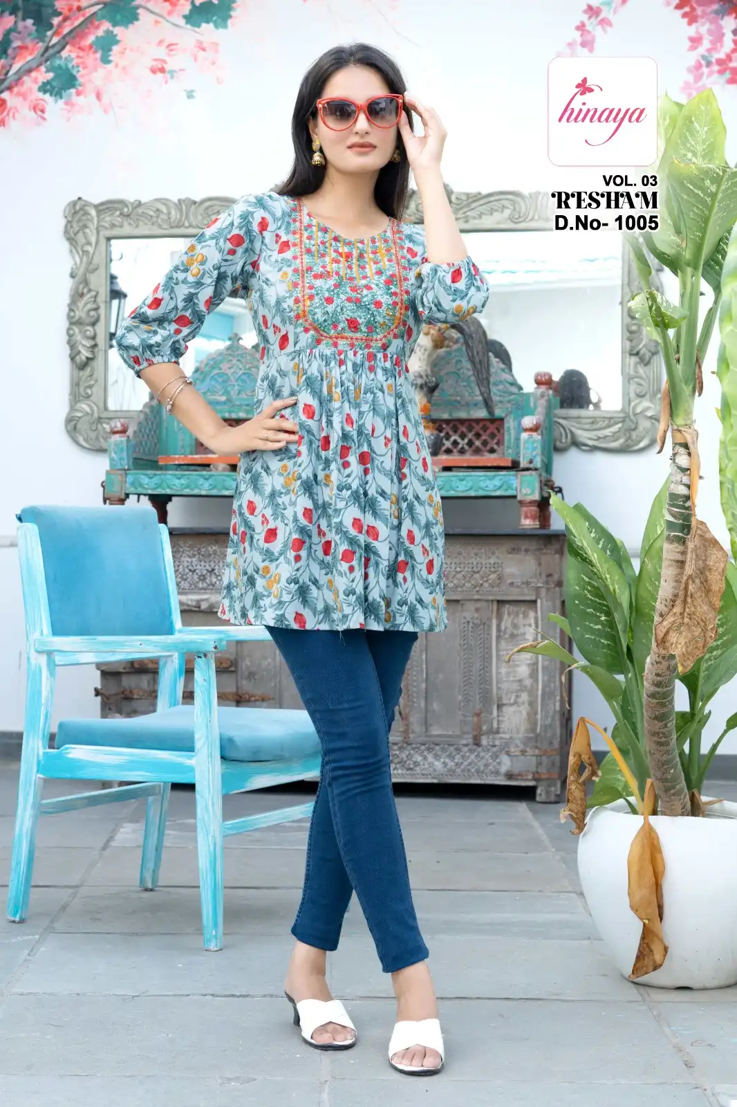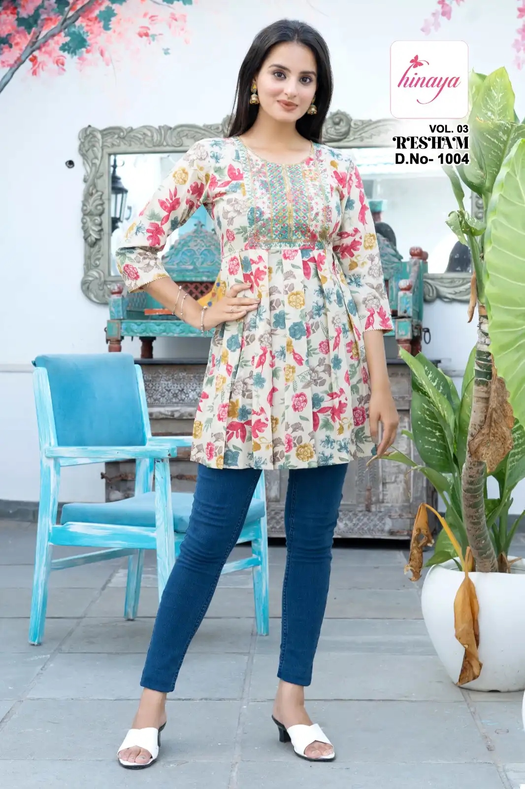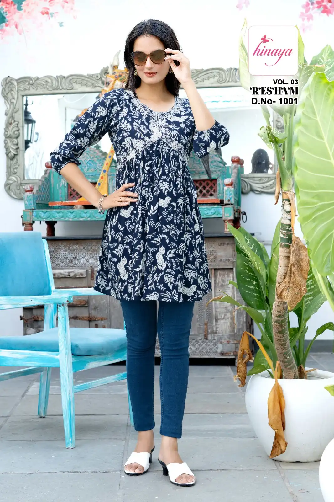 Hinaya Resham Vol 3 Rayon Prints 14 Kg Wholesale Fancy Kurtis Catalog