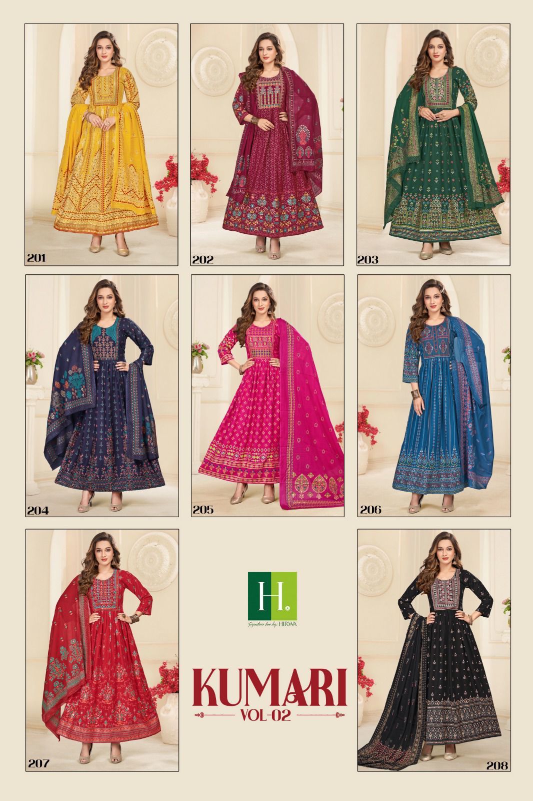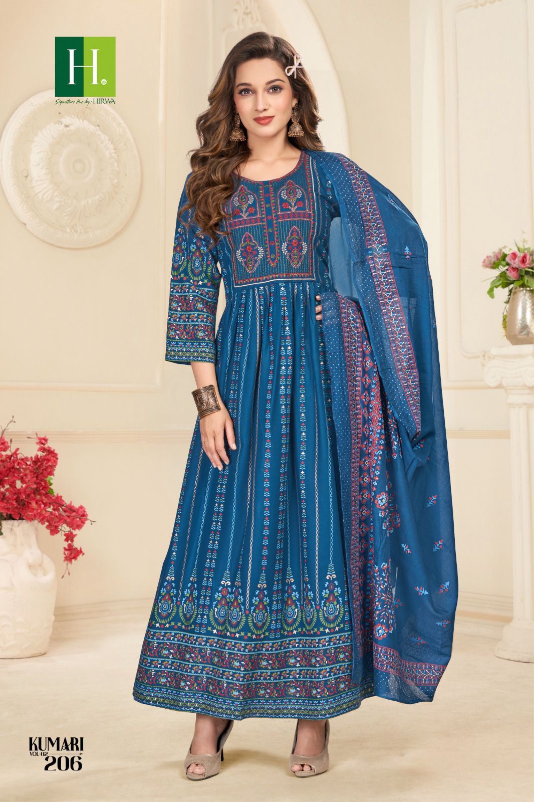Hirwa Kumari Vol 2 Heavy Rayon Wholesale Long Gown with Dupatta Catalog