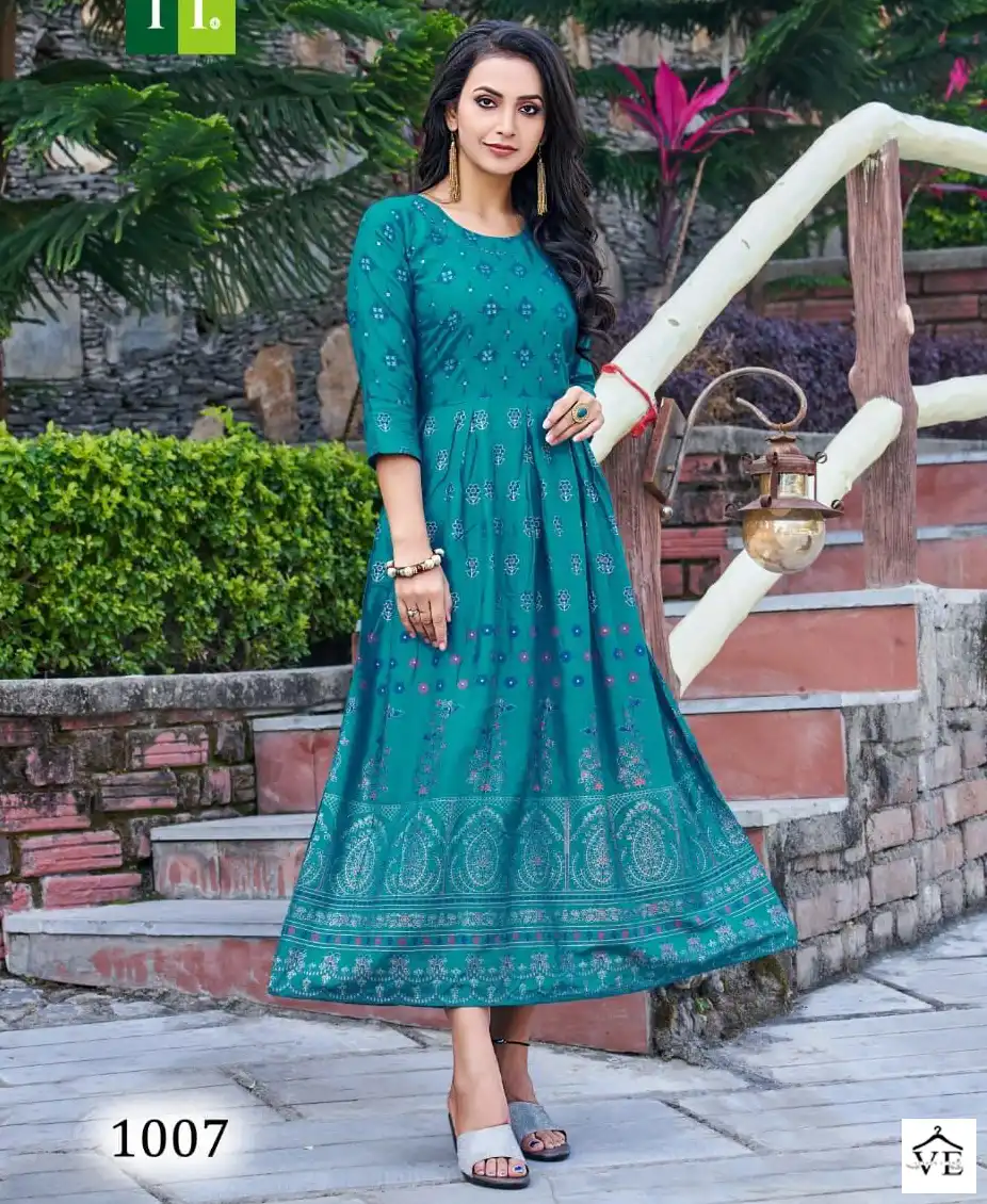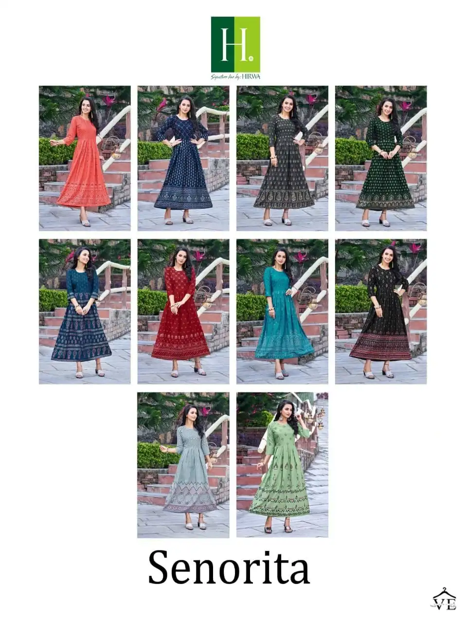 Hirwa Senorita Heavy Rayon Wholesale Fancy Gowns Catalog of 10 Pcs. We deal in Kurtis, Sarees, Dresses Materials, Leggings, and Designer Salwar Kameez.