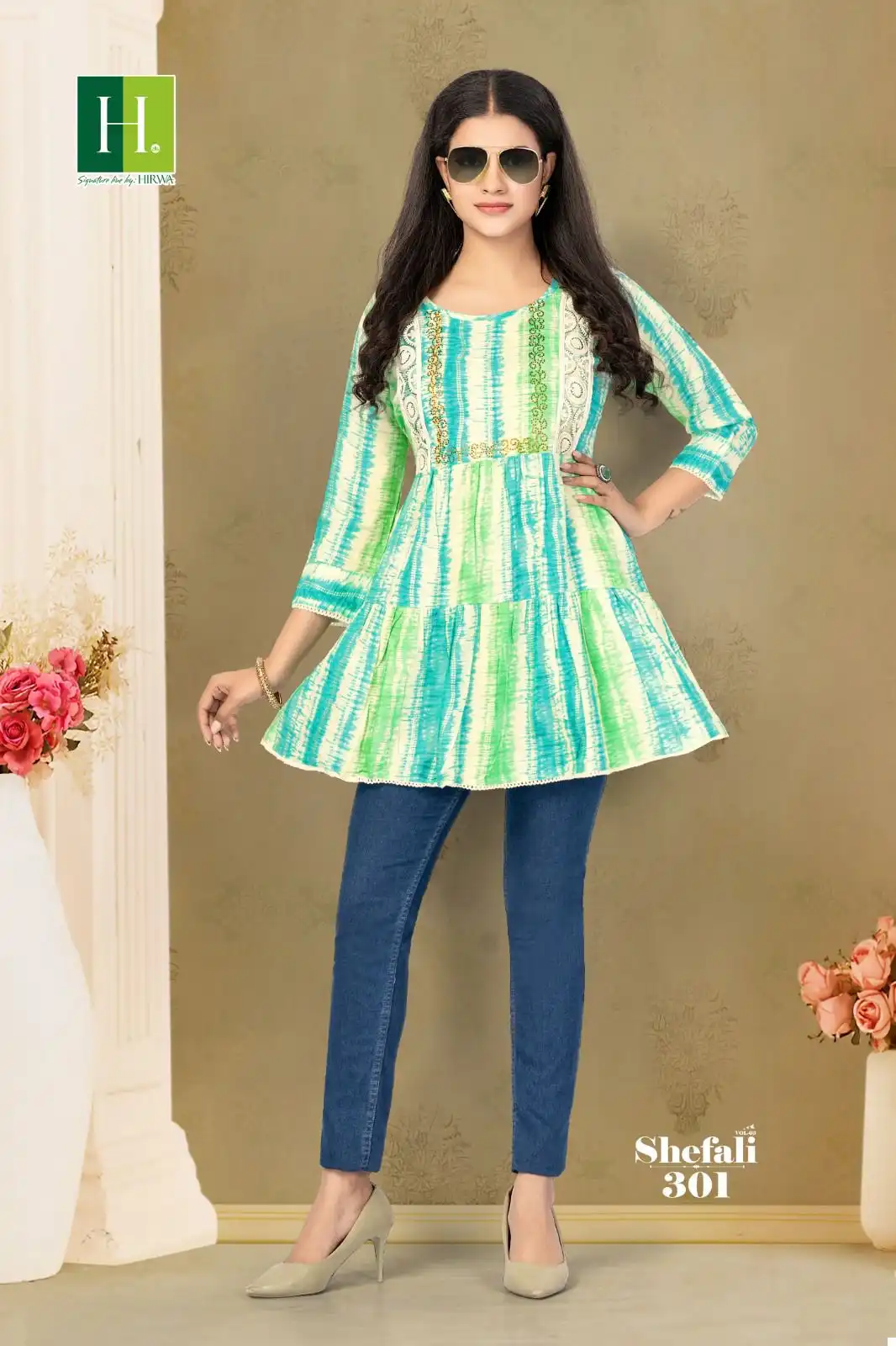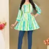 Top: Our Heavy Rayon Procian Prints Top is a celebration of color and design. Crafted from high-quality Rayon fabric, it boasts vibrant procian prints that add a touch of flair to your outfit. The foil and embroidery work elevate the top’s visual appeal, creating a shimmering effect that catches the eye. The top’s design offers a versatile and trendy look suitable for various occasions, allowing you to express your style effortlessly. The Rayon fabric ensures comfort and breathability while maintaining a fashionable appearance.