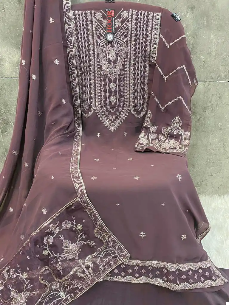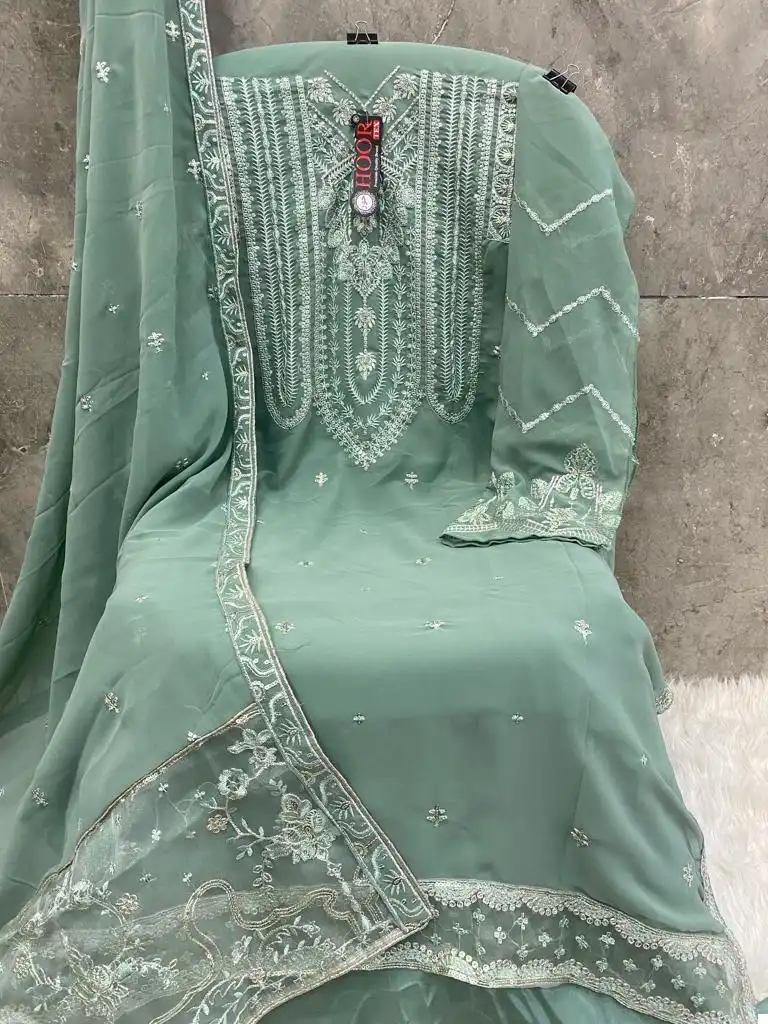 - Top: The top of this ensemble is made from exquisite faux georgette, a fabric celebrated for its light, flowy nature and a slightly textured feel. This material provides an ethereal grace to the outfit, making it both visually stunning and comfortable to wear.