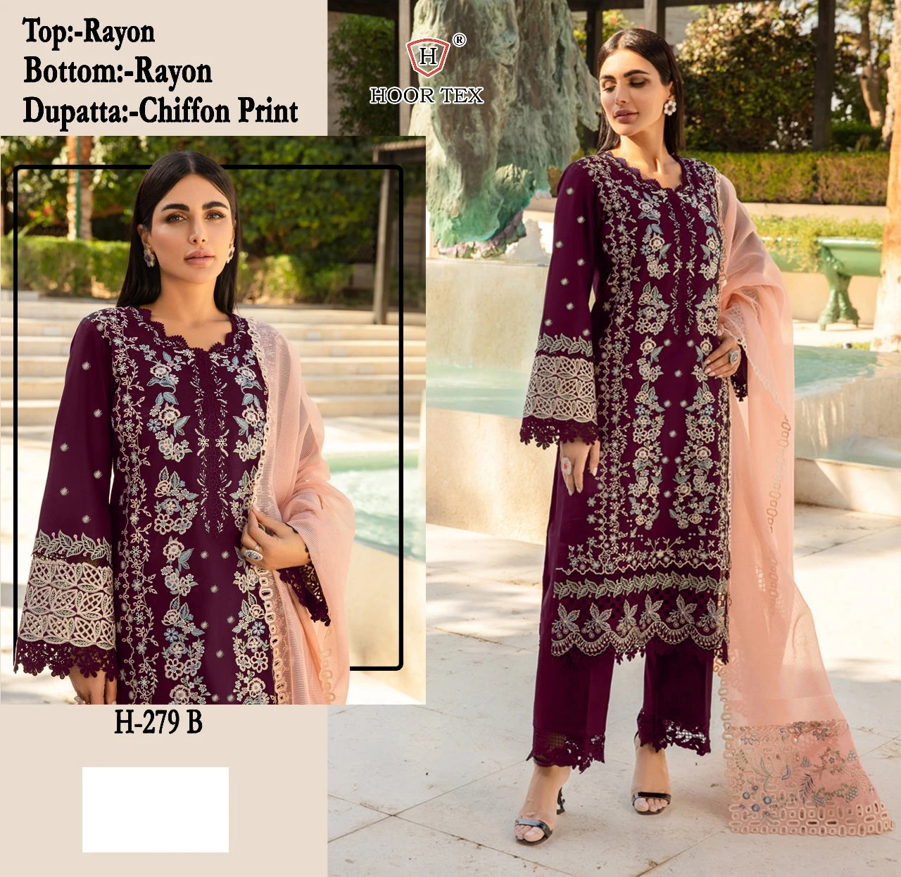 Hoor Tex H-279 A To D Heavy Rayon Wholesale Pakistani Salwar Suit Catalog