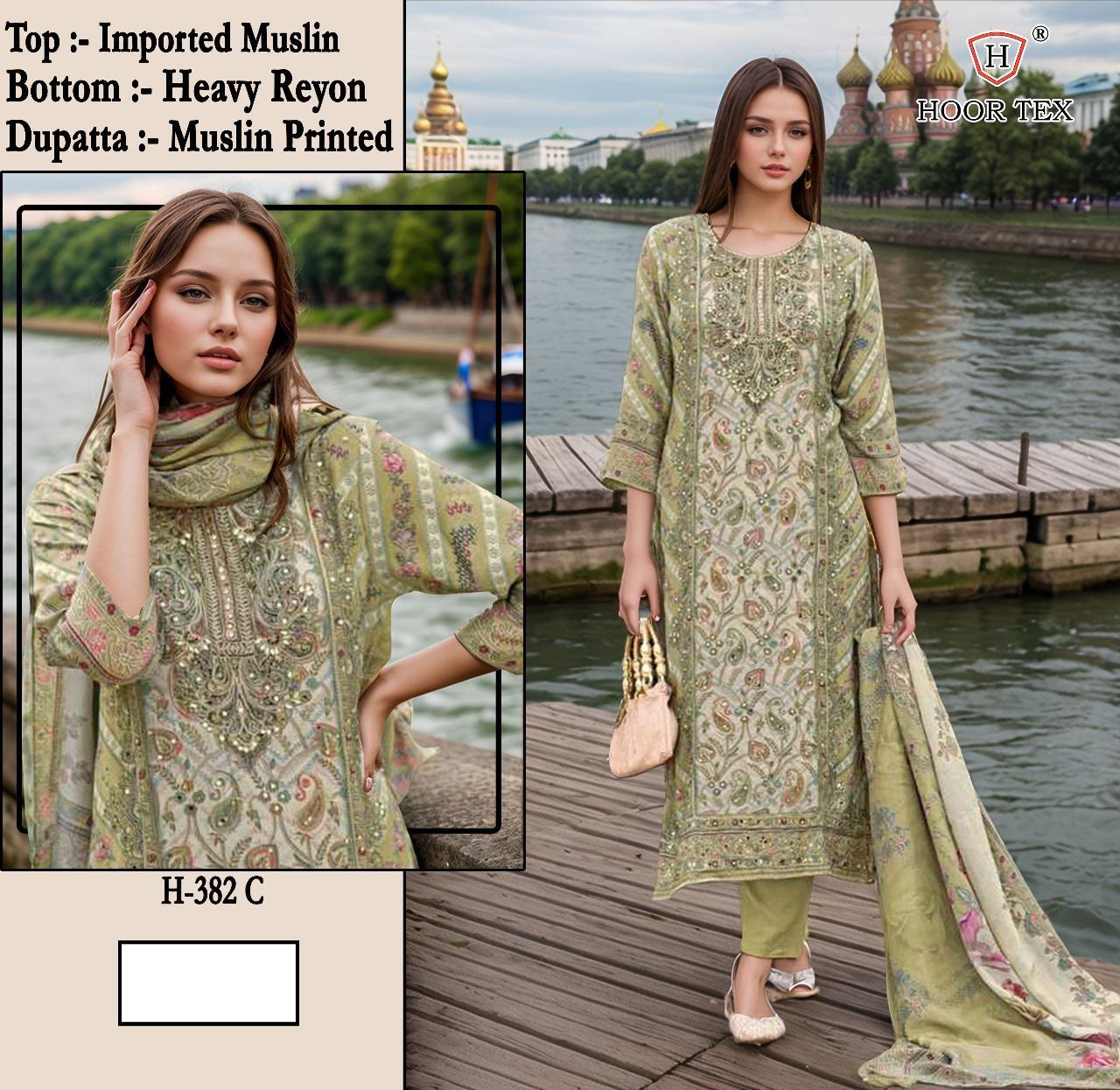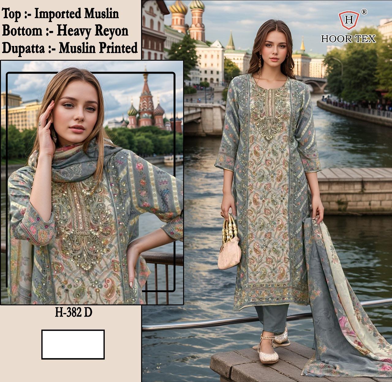 Hoor Tex H-382 A to D Wholesale Muslin Pakistani Suit Collection.