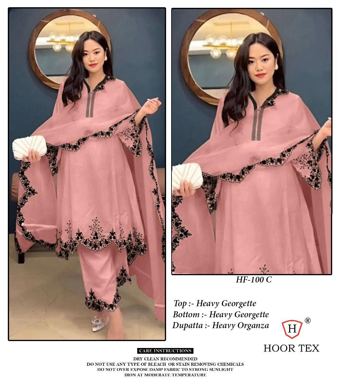 Hoor Tex Hf-100,A To F Heavy Georgette Wholesale Pakistani Readymade Salwar Suit Catalog