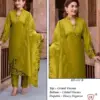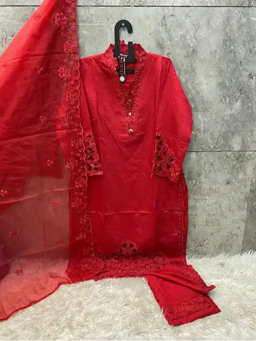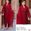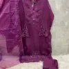 Elegant and luxurious, this set features high-quality viscose fabric with coordinated top & bottom and a beautifully finished organza dupatta — perfect for festive or occasion wear.