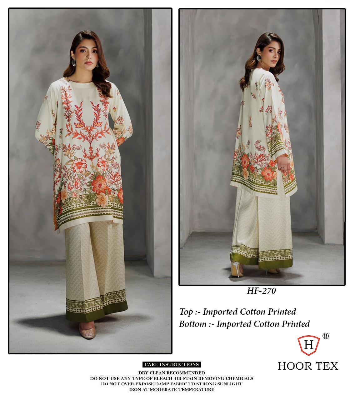 Upgrade your ethnic wardrobe with Hoor Tex’s latest Pakistani collection – HF-261 to 272, a range of elegant full-stitched suits perfect for everyday elegance and casual glam. Made from soft imported cotton and satin fabrics with vibrant prints, these suits bring style and comfort together effortlessly.