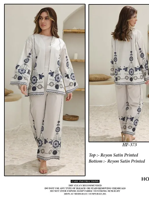 Hoor Tex HF-356/373 Reyon Satin Printed Co-Ord Set Catalog