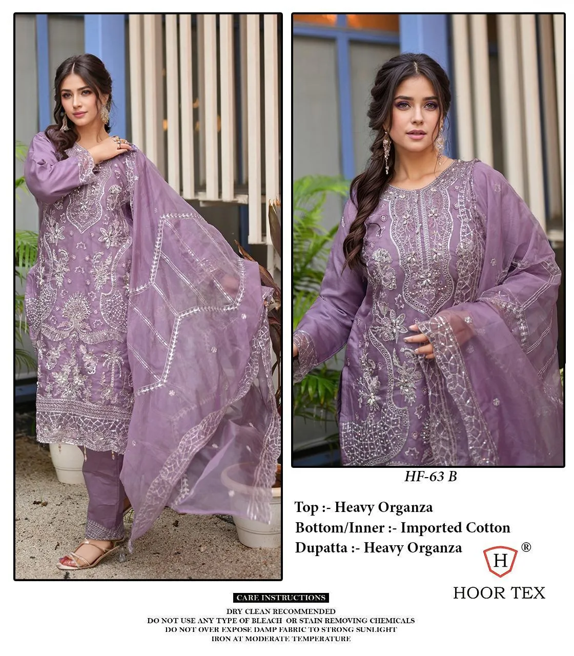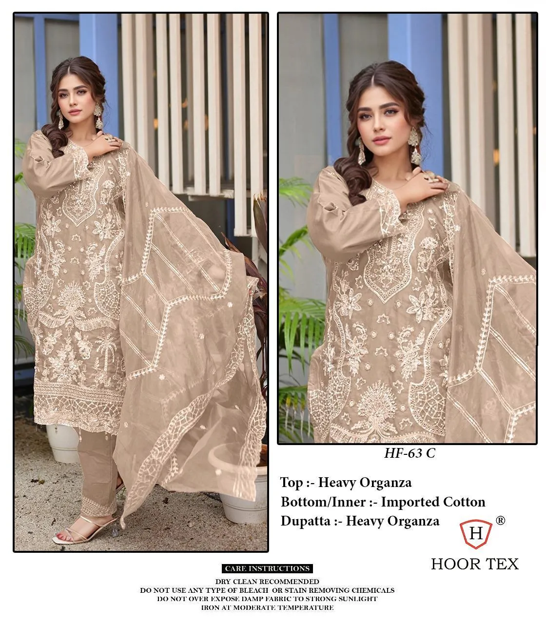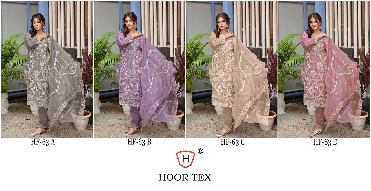 Hoor Tex HF-63,A To D Heavy Organza Wholesale Pakistani Salwar Suit Collection