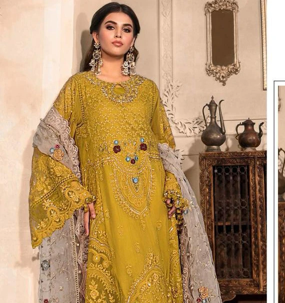 🧣 Dupatta: The ensemble is beautifully completed with a heavy organza dupatta, adding a touch of grace and sophistication.
