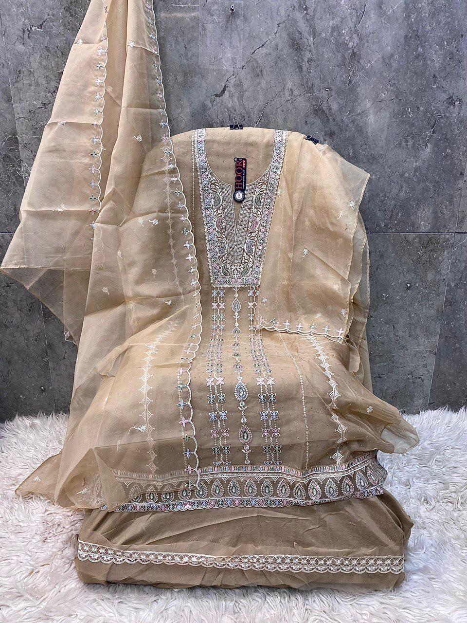Hoor Tex OR-79 A to D Heavy Wholesale Organza Pakistani Suit.