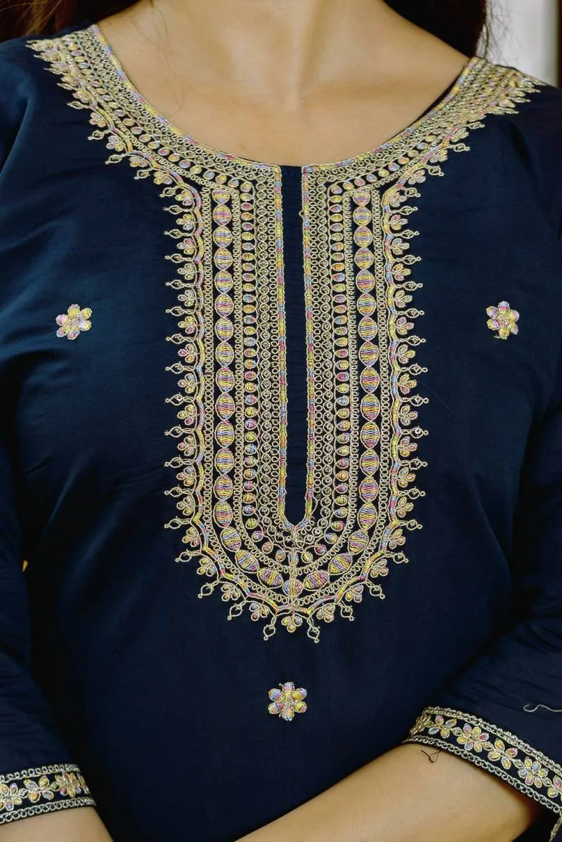 Hr 33 Viscose Chanderi Embroidery Kurti Pant And Dupatta Set