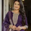 Hr 34 Viscose Chanderi Embroidery Kurti Pant And Dupatta Set