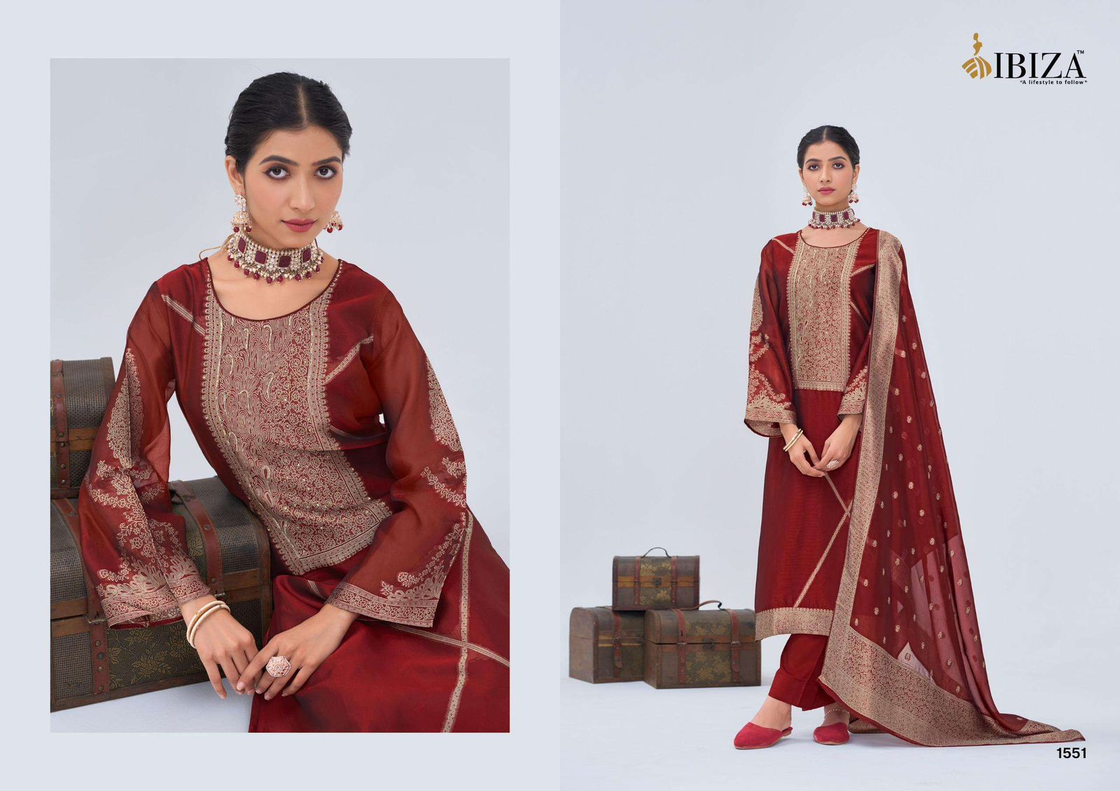 Shop Ibiza Antra Pure Banglory Silk Jacquard Suit with Handwork at wholesale prices.