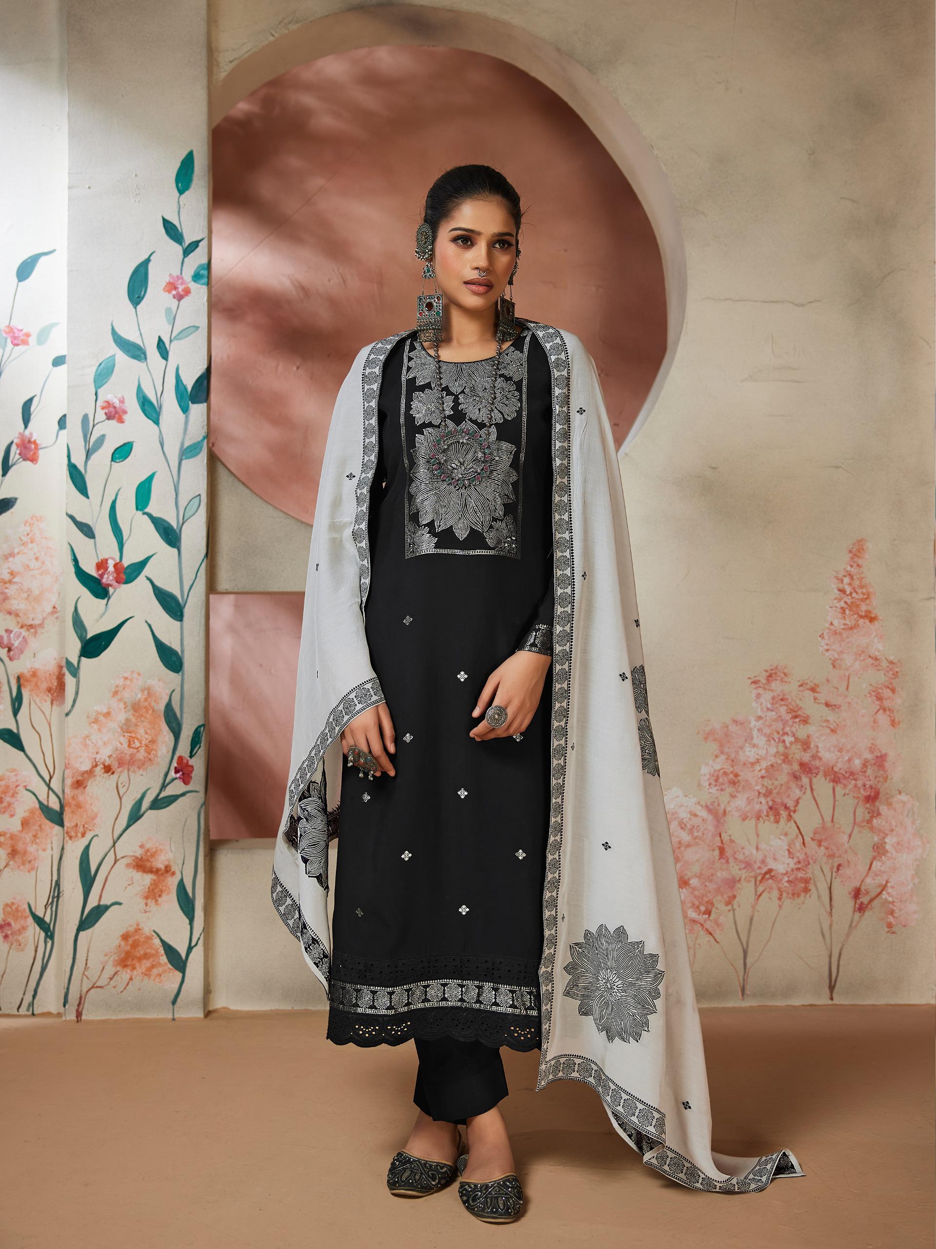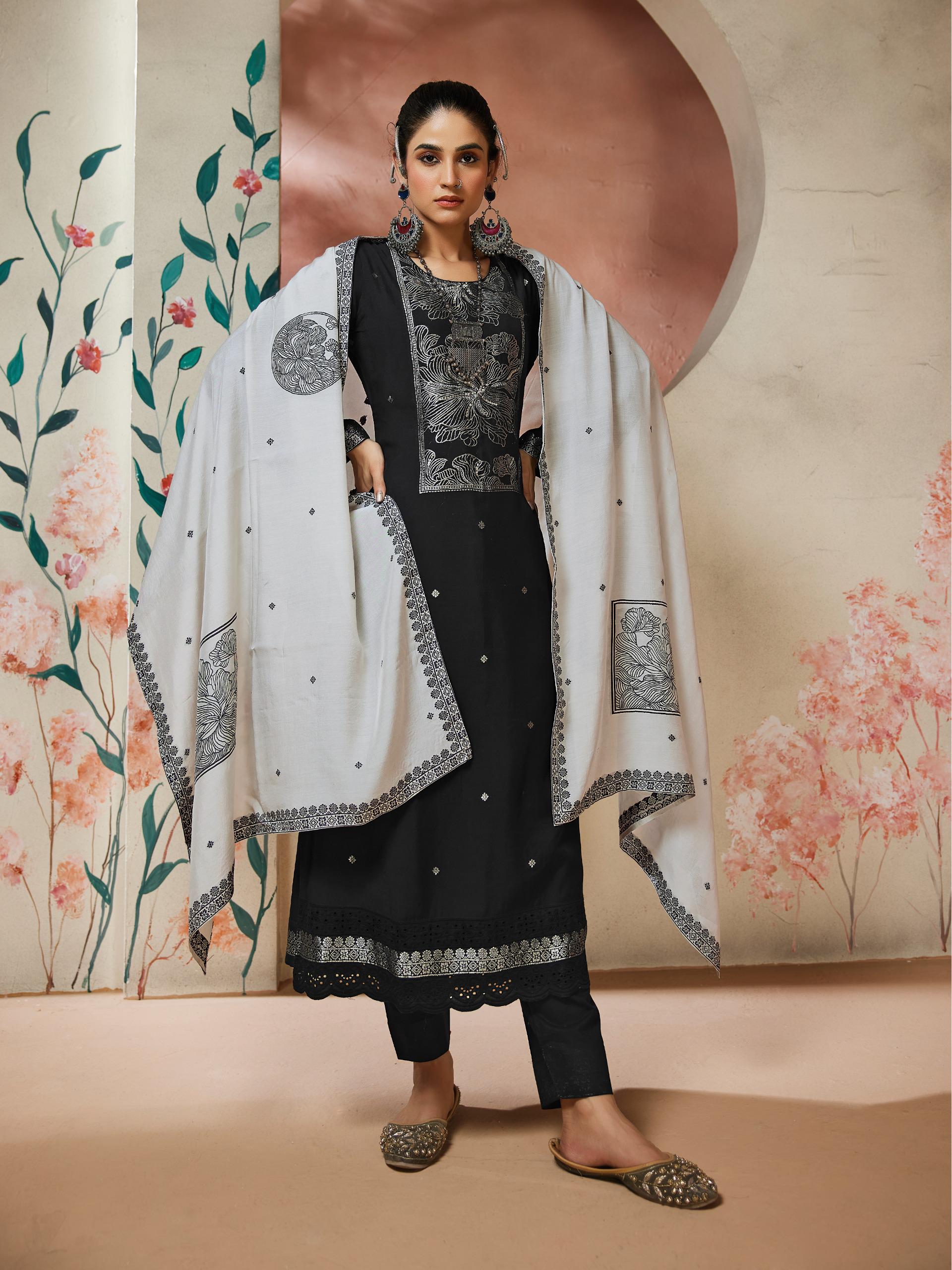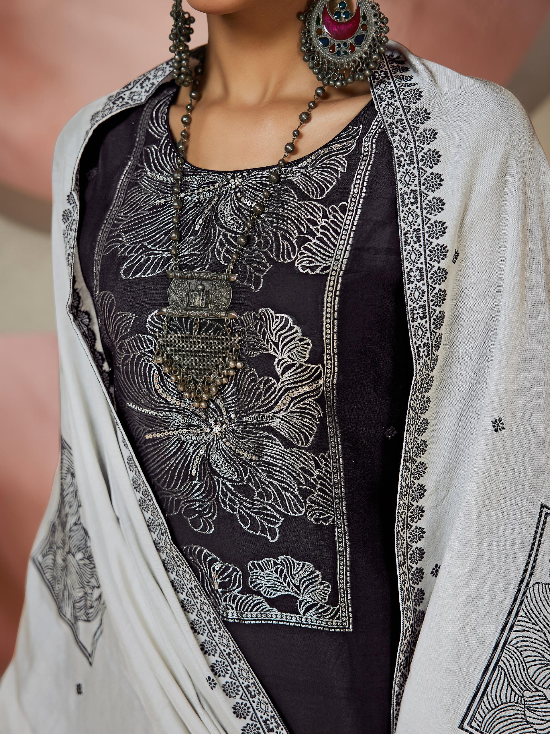 Shop the premium Ibiza Arizona salwar kameez set online at the best wholesale price. This exclusive 3-piece ethnic ensemble showcases pure muslin jacquard fabric for both the top and dupatta, adorned with intricate handwork and elegant embroidery. Paired with a comfortable pure cotton bottom, this set is a perfect blend of luxury and tradition for festive and occasion wear.
