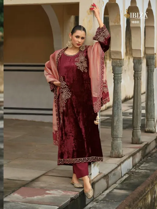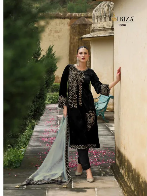 Ibiza Attar Wholesale Velvet Embroidery Designer Salwar Suit Collection.