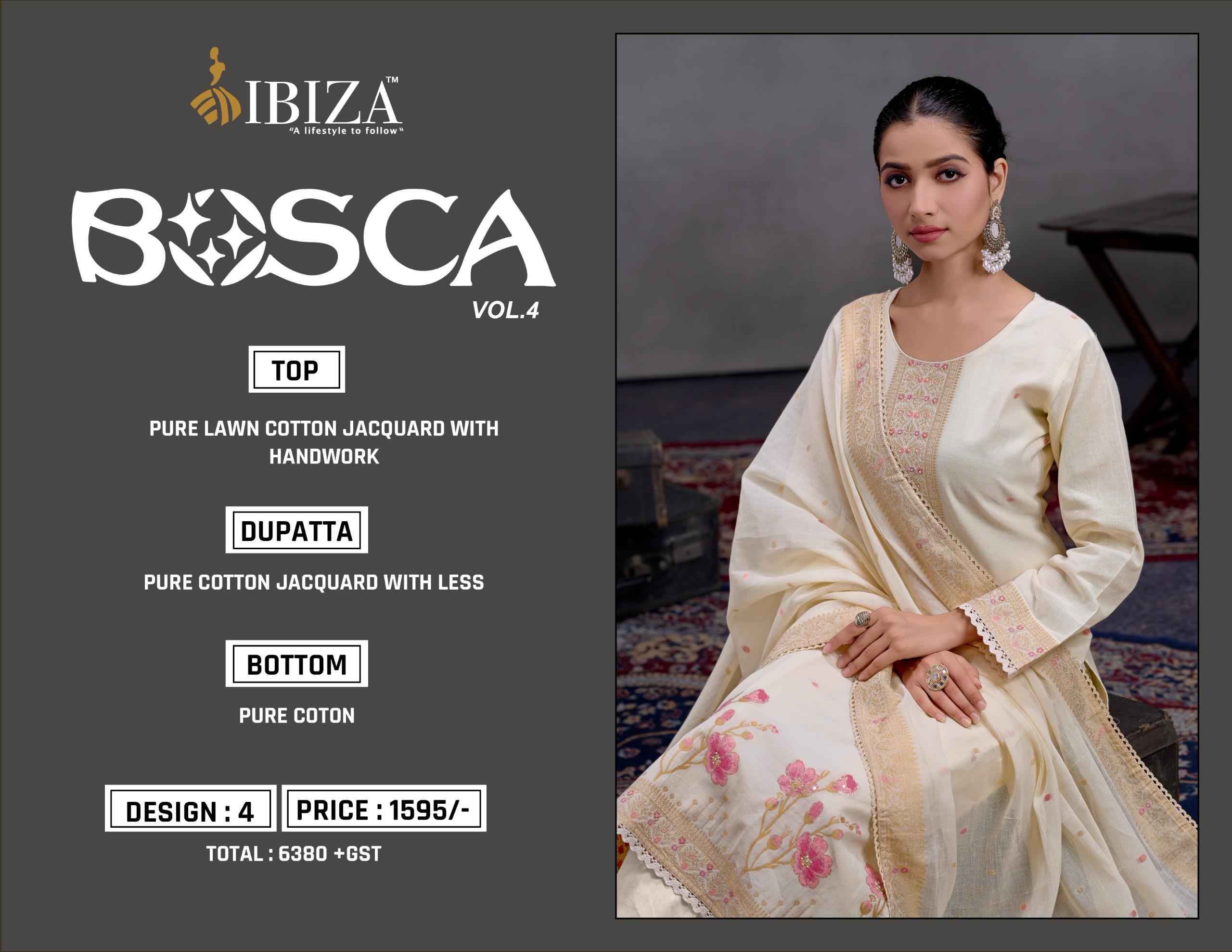 IBIZA Bosco Vol 4 Designer Lawn Cotton Jacquard Salwar Suits Collection.