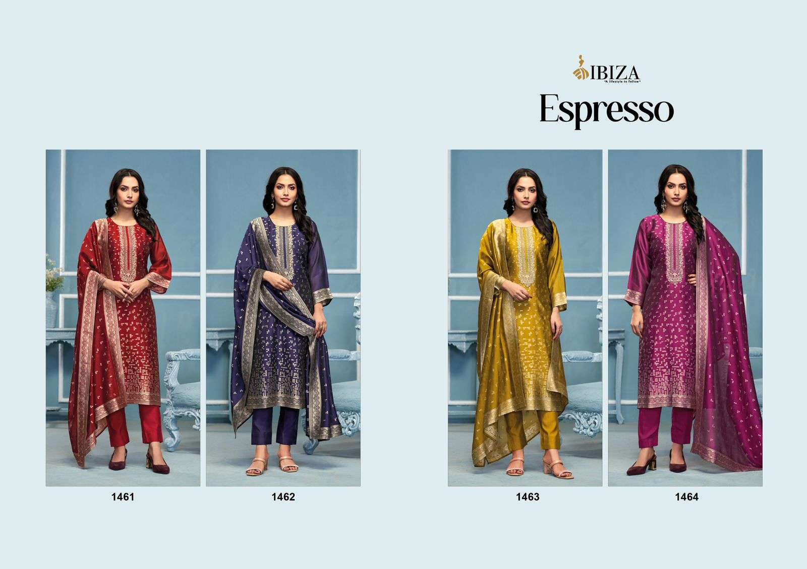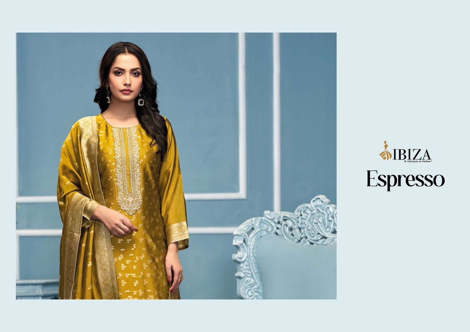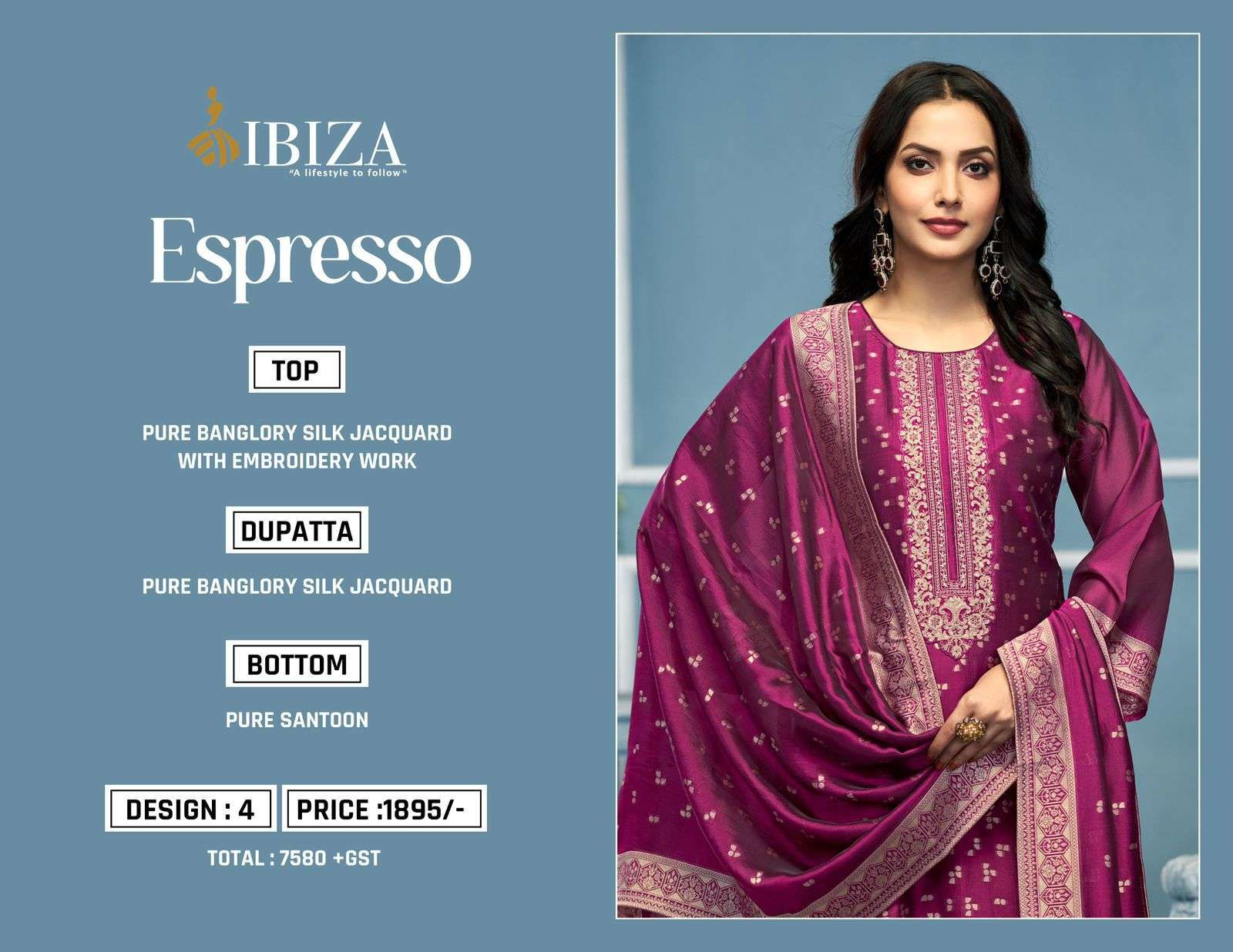 IBIZA Espresso Pure Banglory Silk Jacquard Embroidered Suit Collection