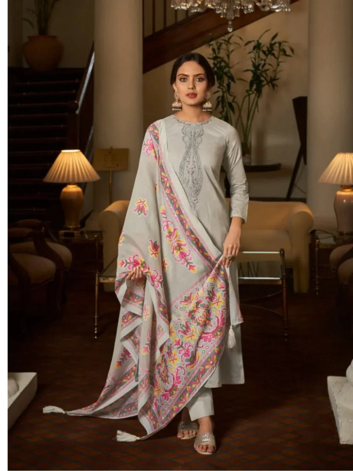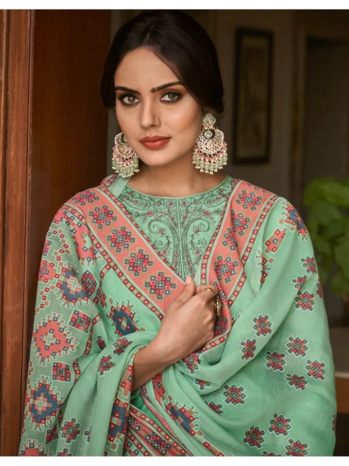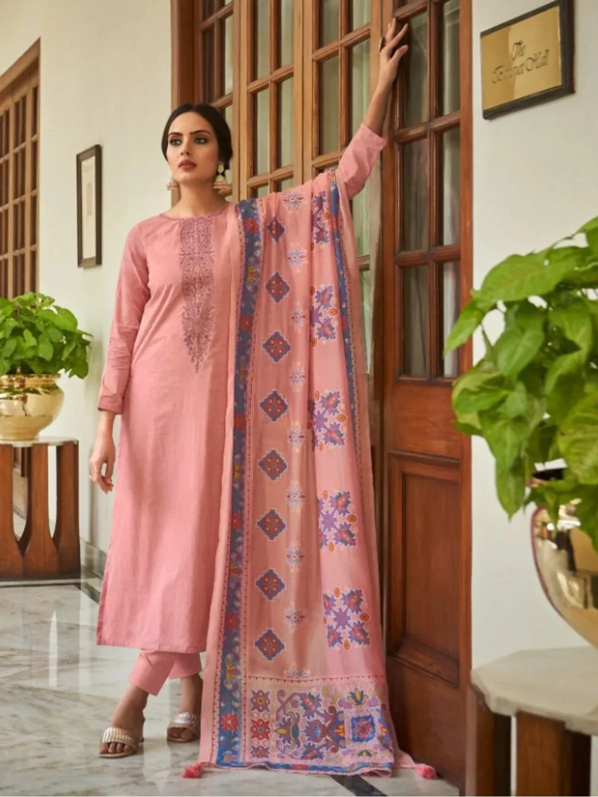 Top PURE CAMRIC COTTON DIGITAL PRINT WITH DELICATED NACK EMBROIDERY