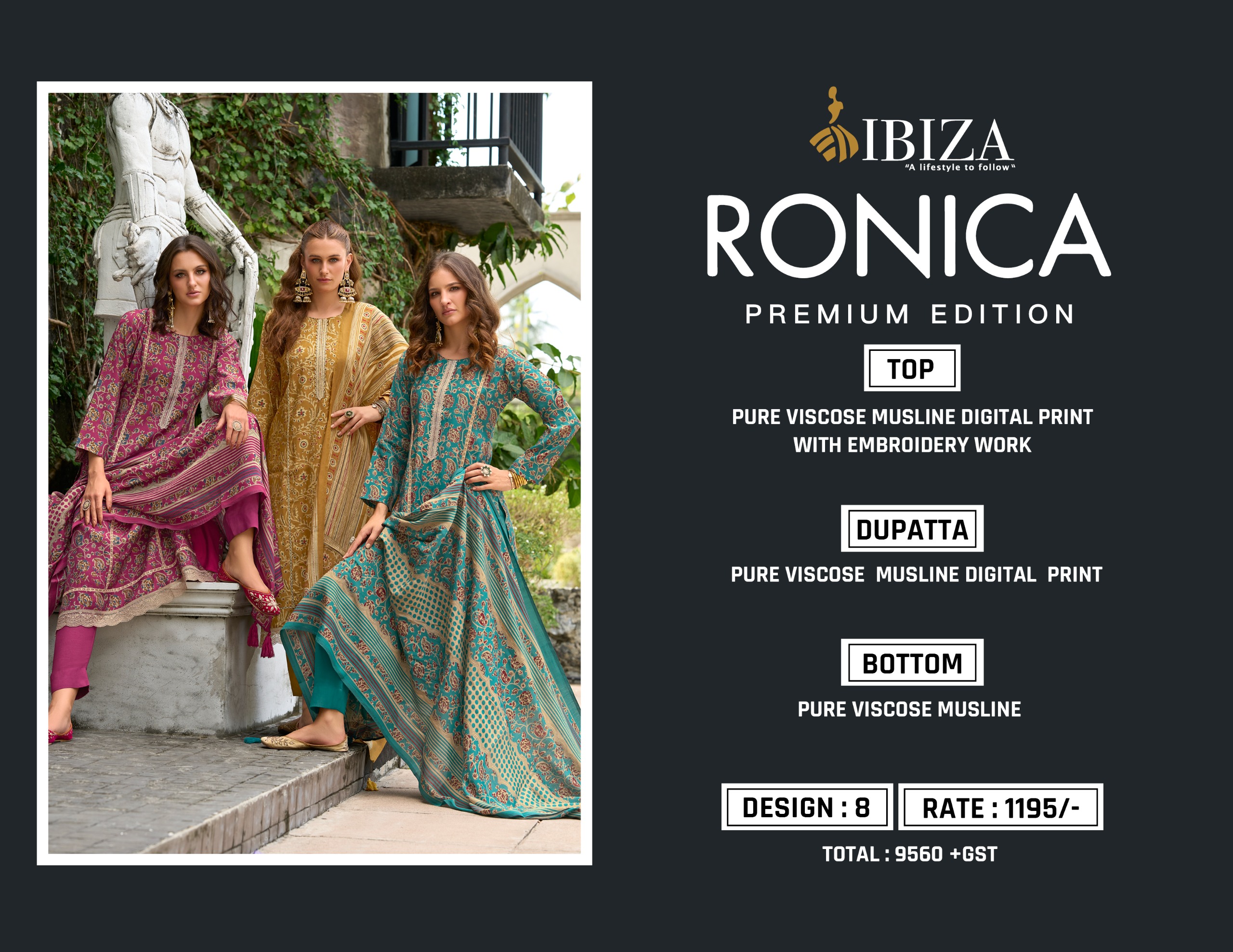 Ibiza Ronica Pure Viscose Muslin Digital Printed Suit Wholesale Collection.