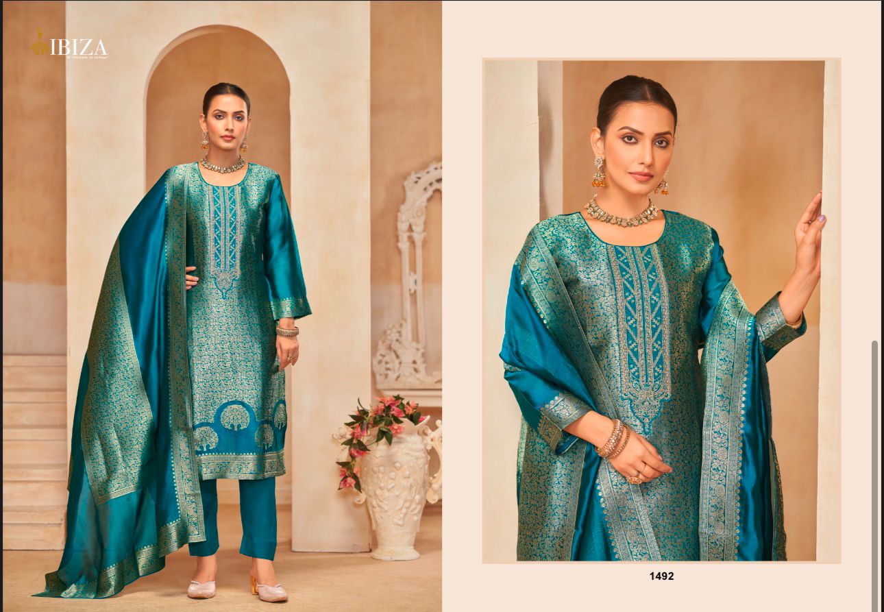 Embrace elegance with the Ibiza Sakhi Vol-7 Four-Piece Lehenga Set. This collection showcases luxurious fabric and intricate embroidery for a sophisticated look. Here’s a breakdown of this stunning set:
