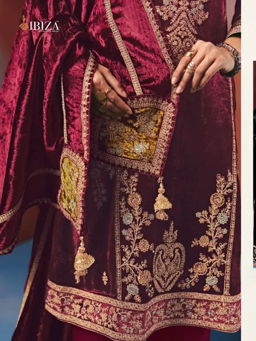 Ibiza Taamasi Wholesale Viscose Velvet Embroidery Designer Salwar Kameez Collection.