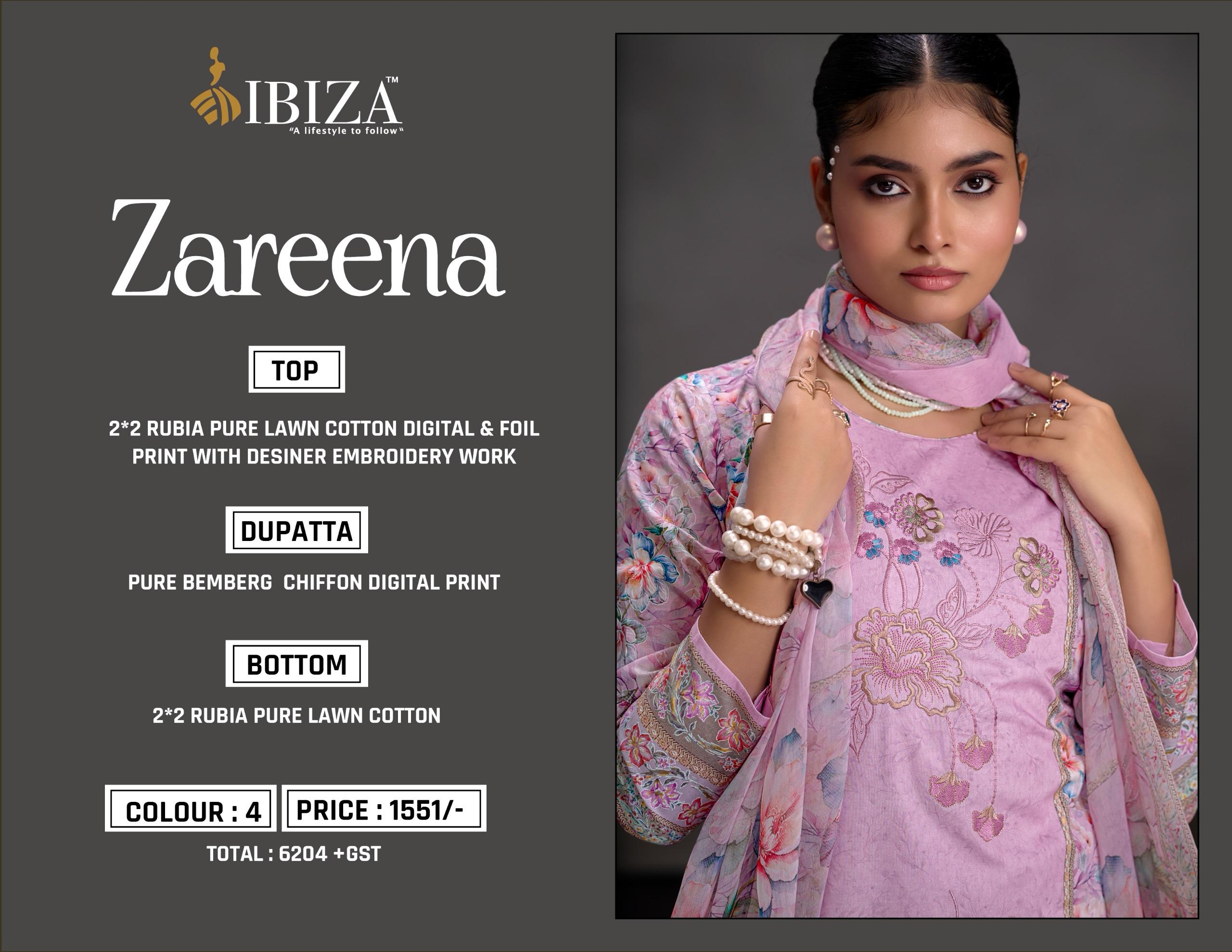 Buy IBIZA ZAREENA series unstitched lawn cotton dress material set with designer embroidery and digital print at the best wholesale price.