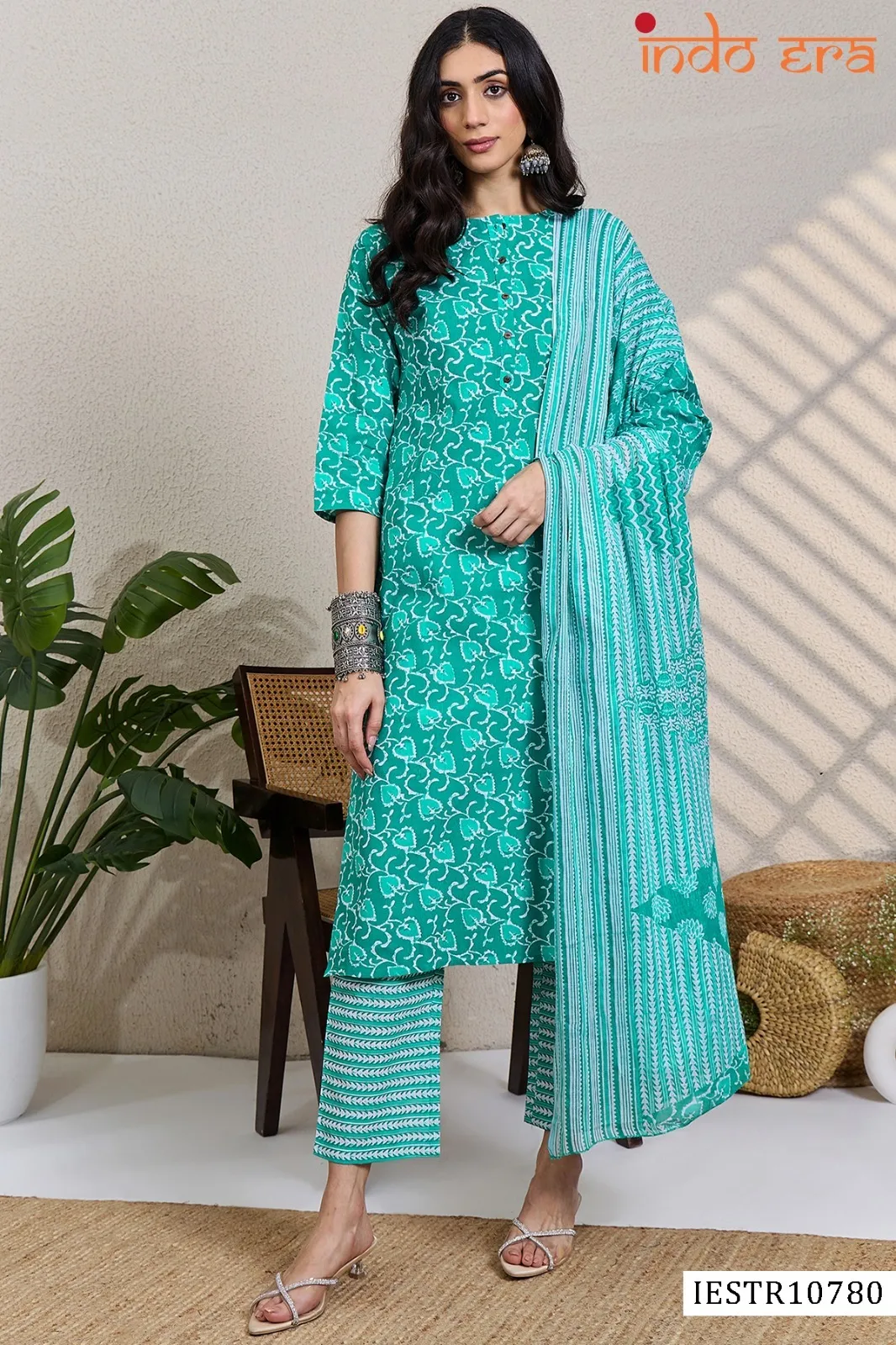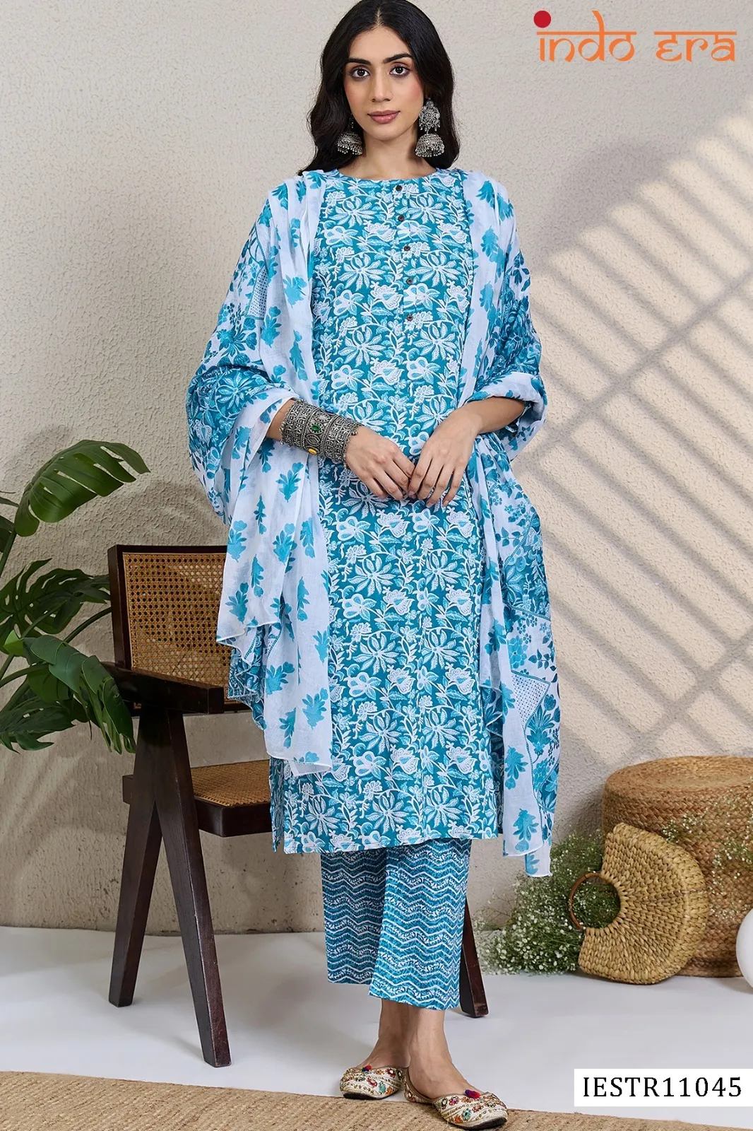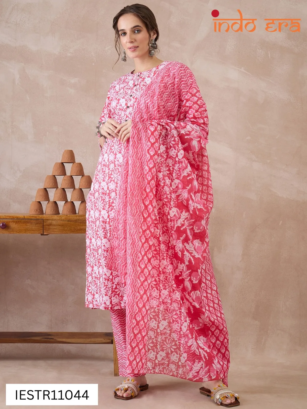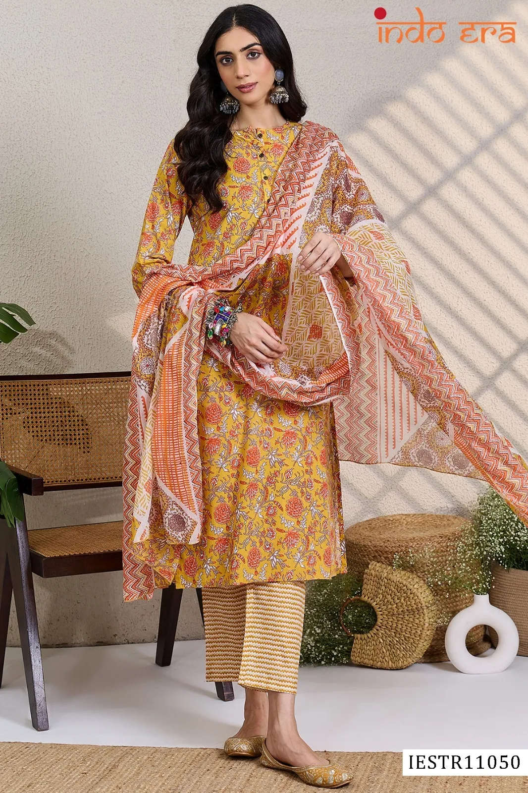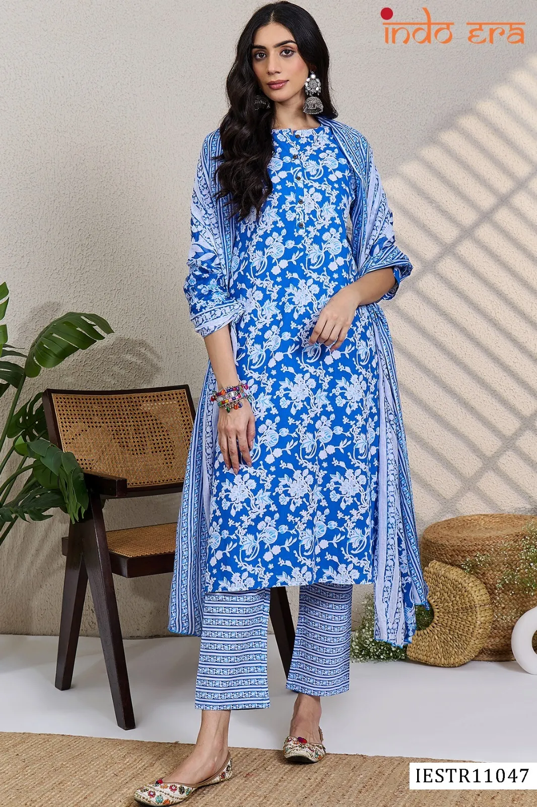 Indo Era 2585 Cotton Floral Printed Kurti With Bottom Dupatta