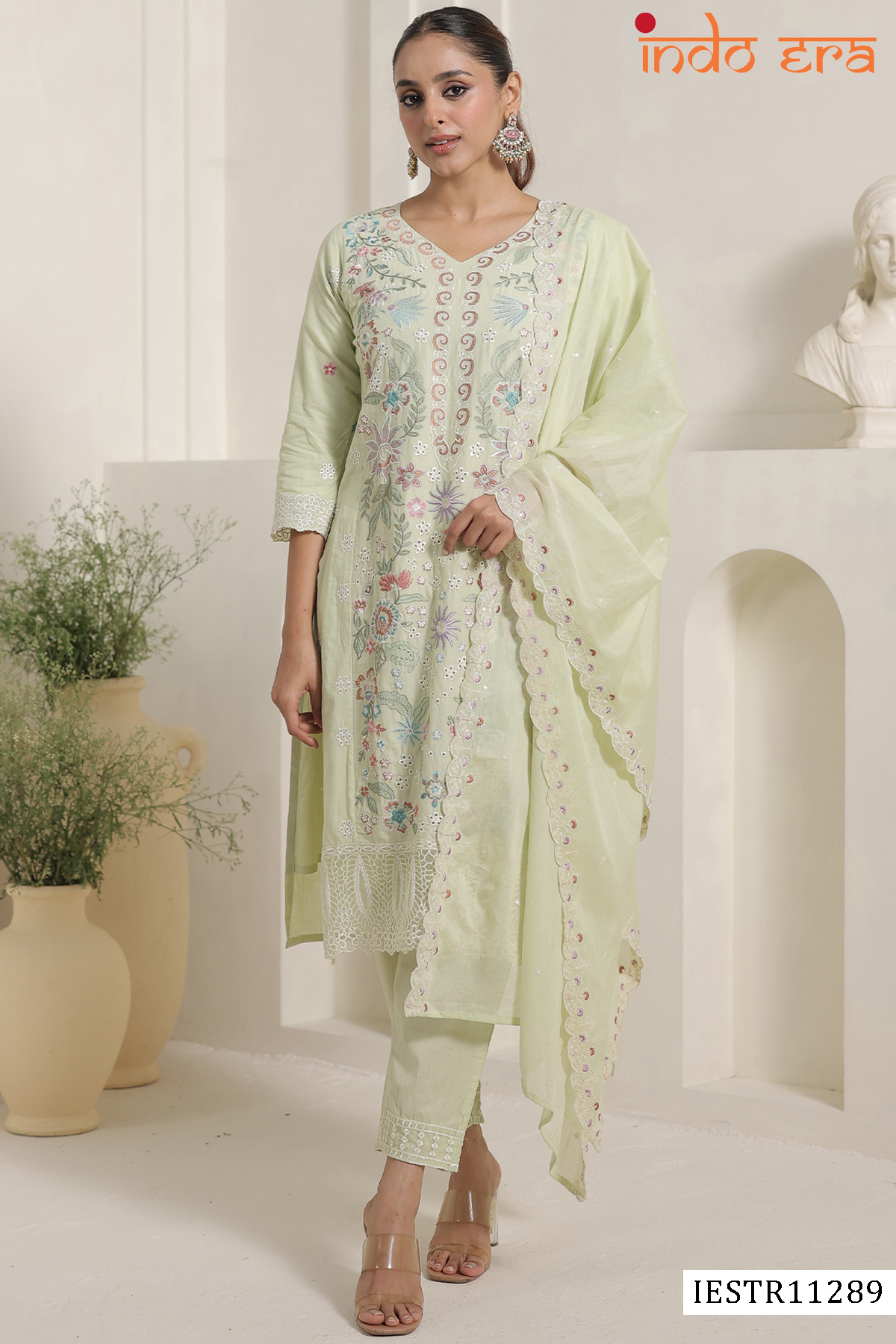 - Refresh your ethnic wardrobe with the timeless charm of the Indo Era 2601 Cotton Embroidered Kurti with Bottom & Dupatta Collection. Thoughtfully crafted for comfort and elegance, this collection is made from premium breathable cotton fabric and enhanced with fine embroidered thread work, making it a perfect blend of everyday grace and festive sophistication.