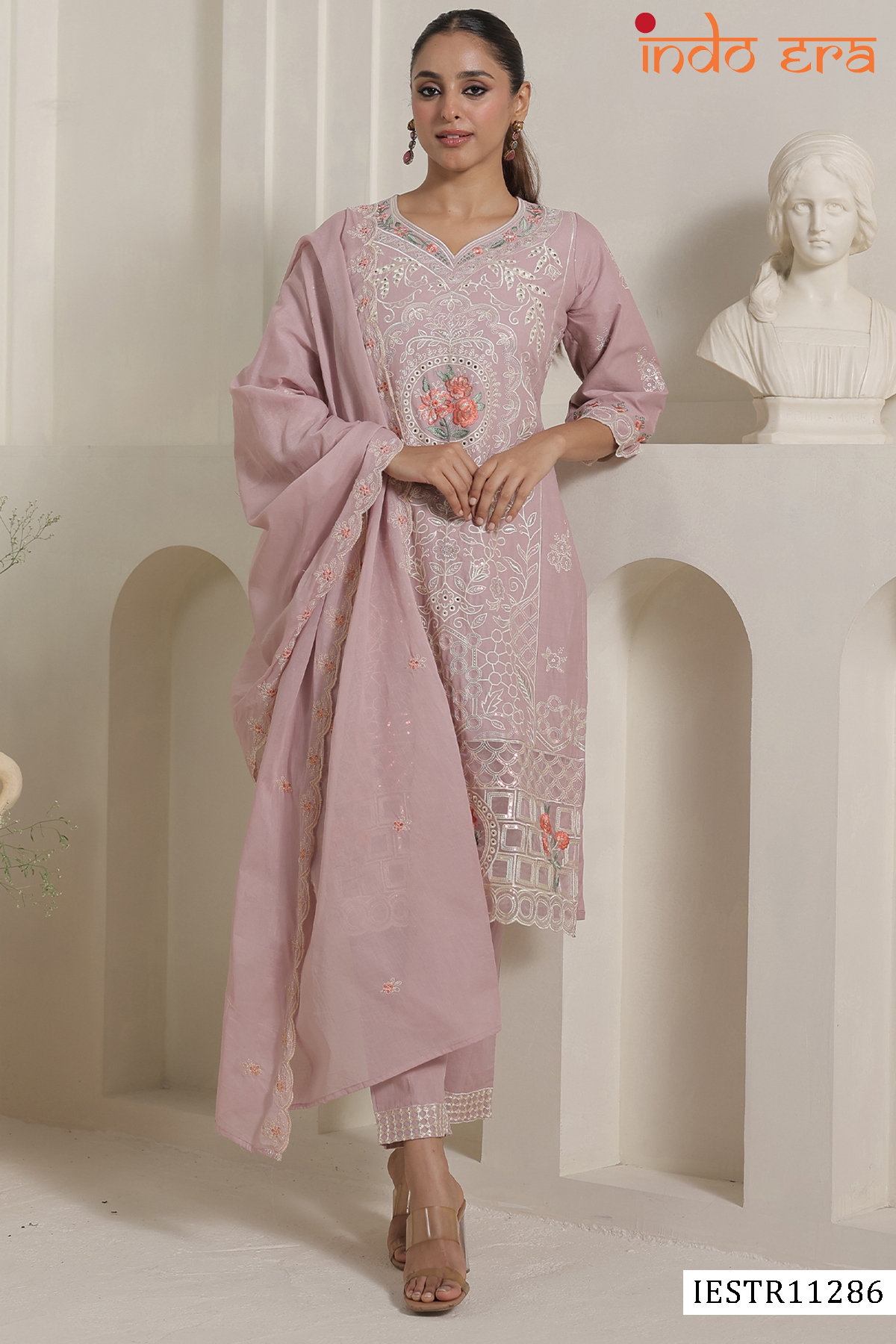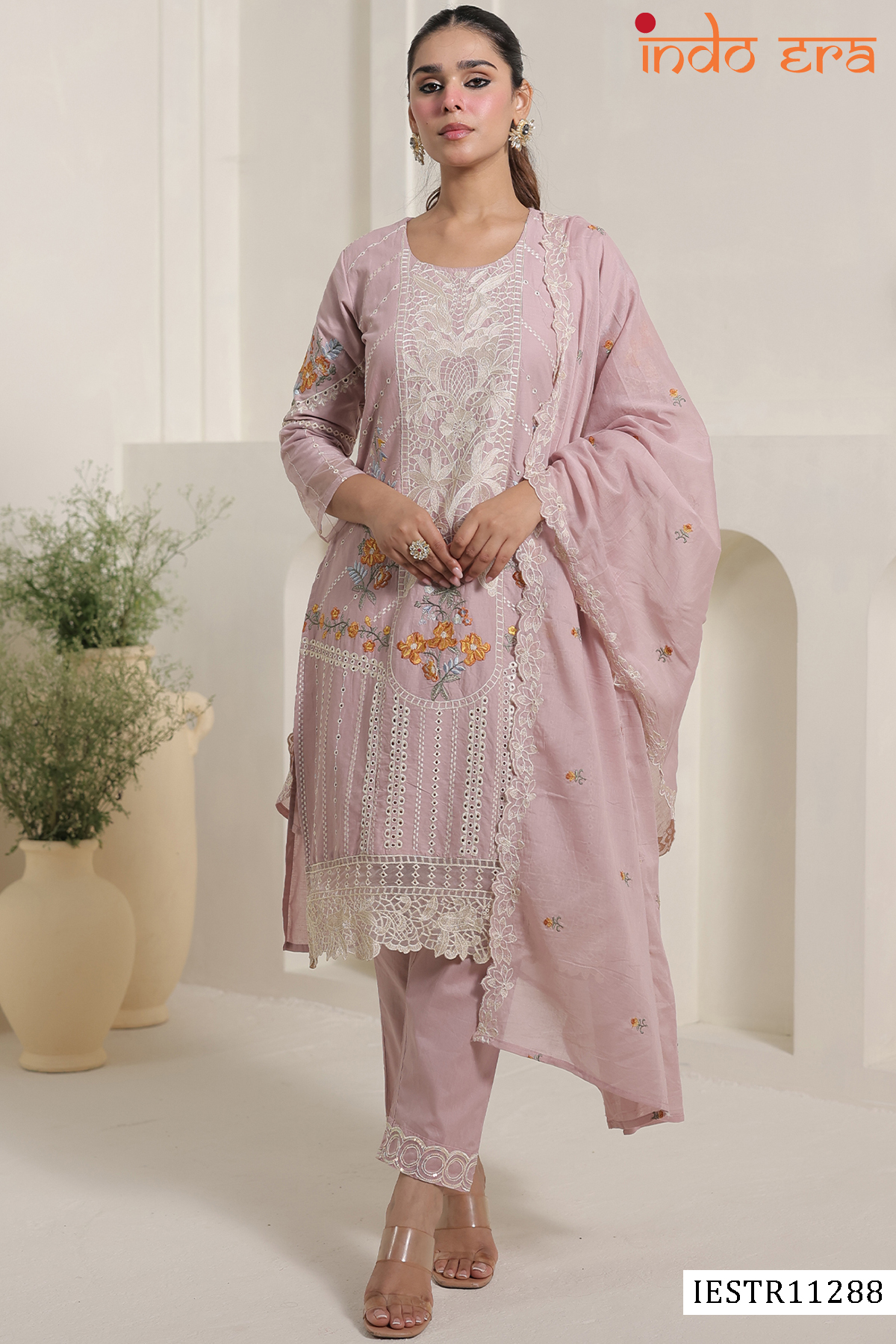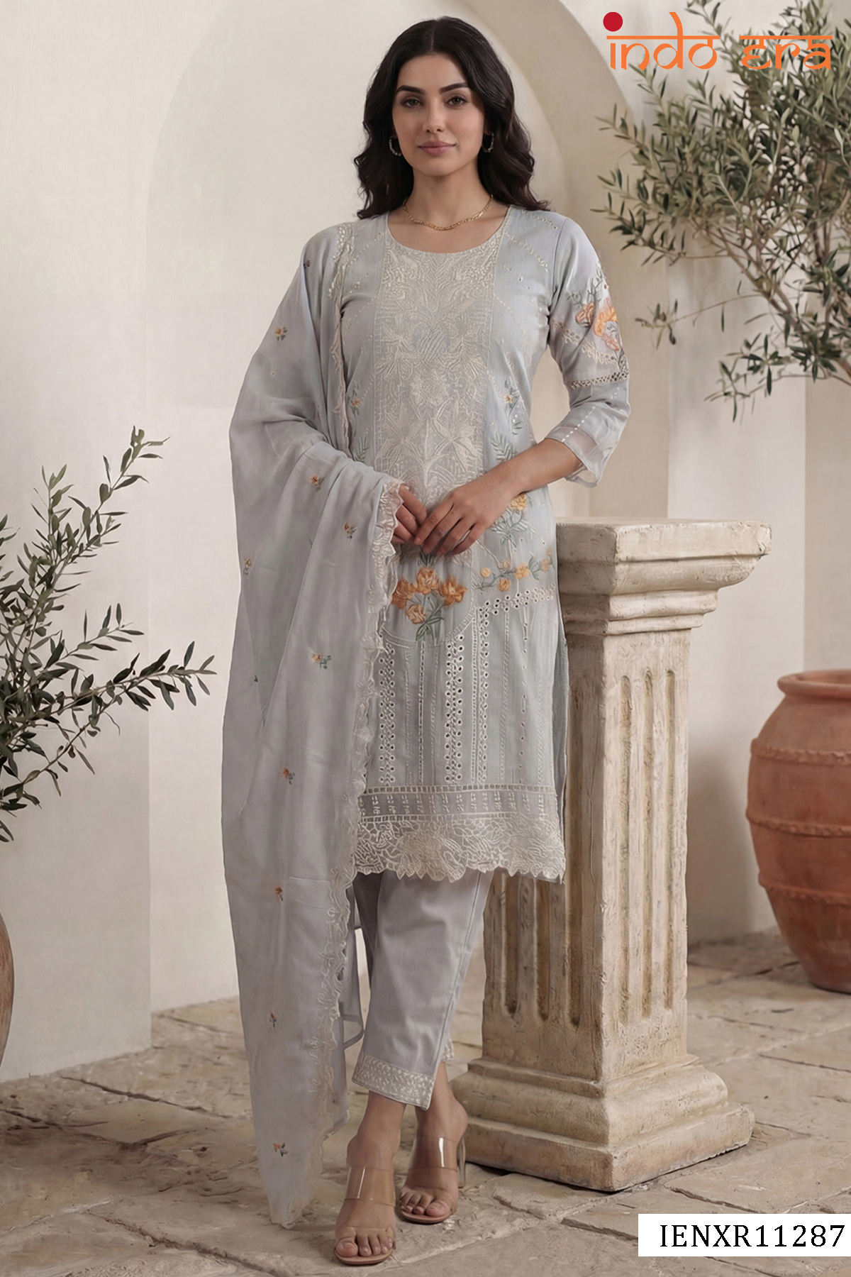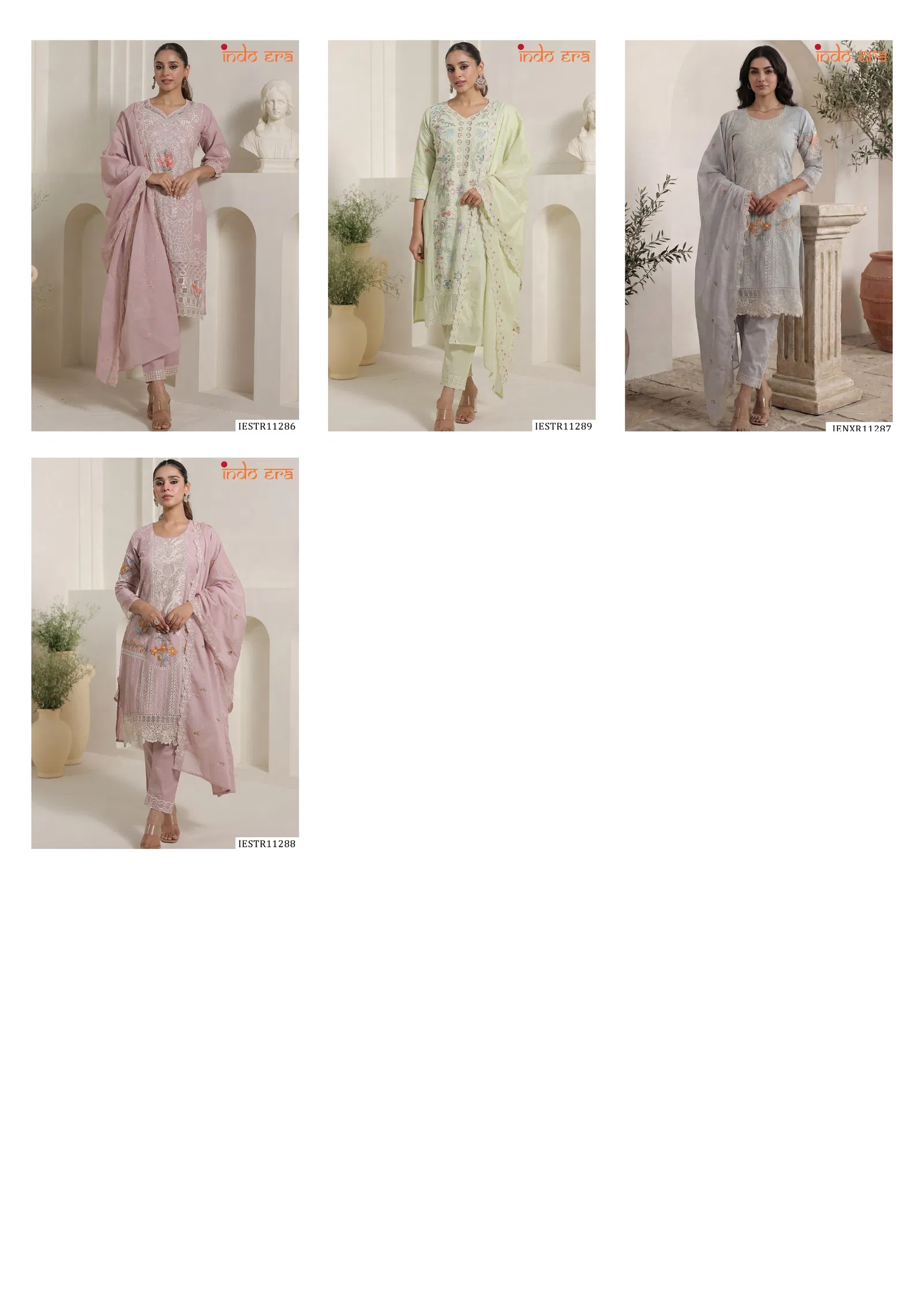 - Designed to suit a wide range of body types, the Indo Era 2601 series is available from XS to XXL, ensuring an inclusive fit for all. The soft cotton kurti offers all-day comfort, while the delicate embroidery adds a refined ethnic touch. Paired with a matching bottom and dupatta, this set is ideal for festivals, wedding functions, and elegant daywear.