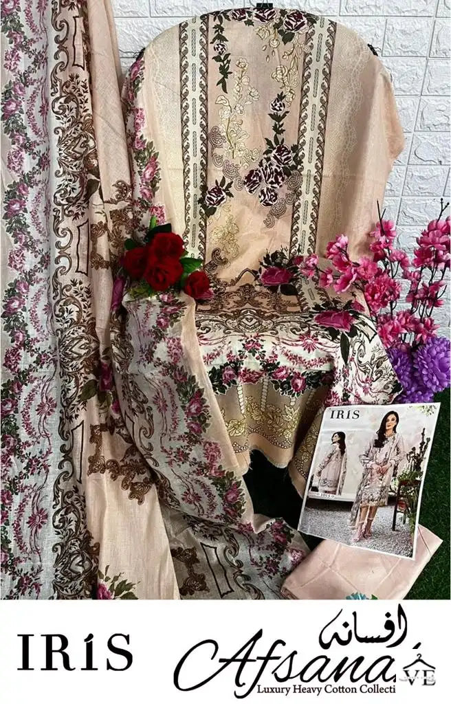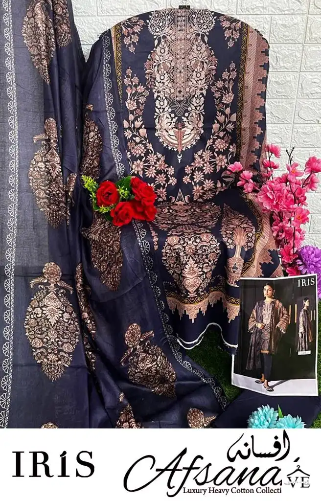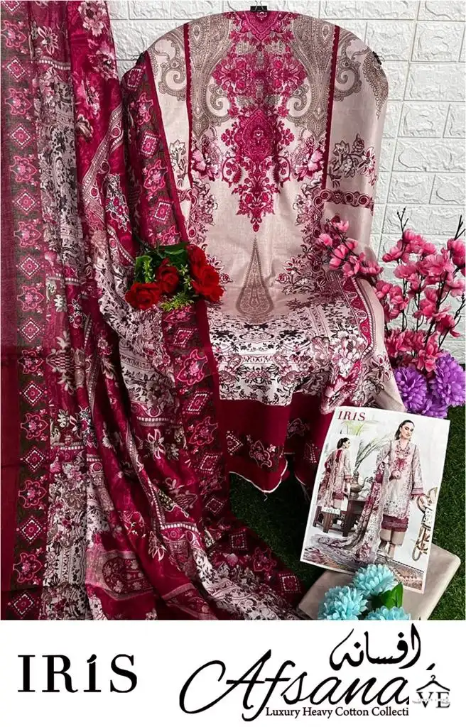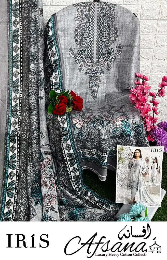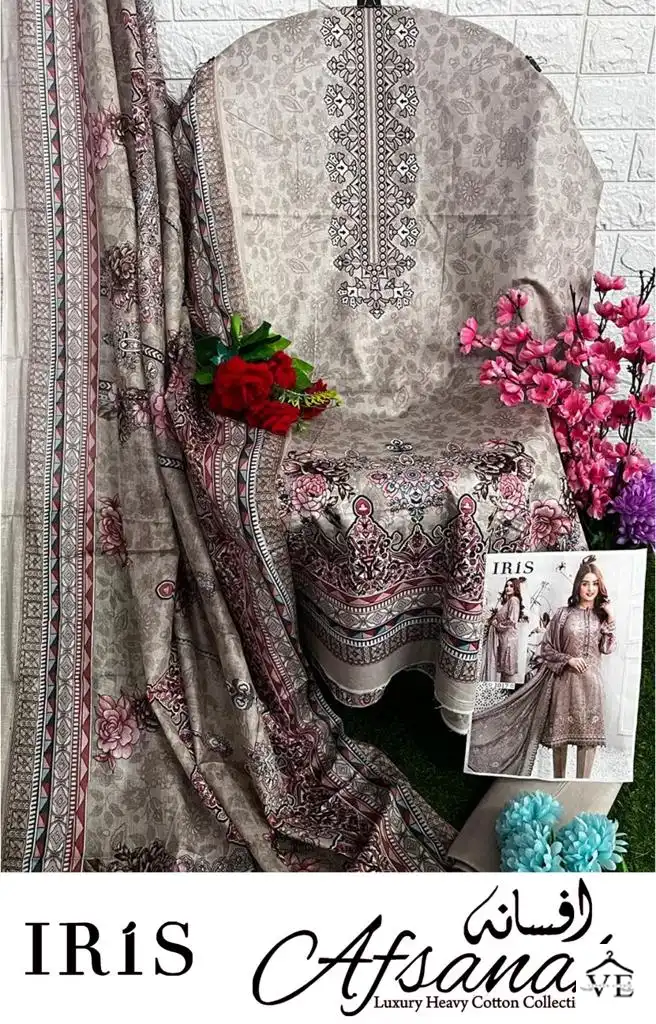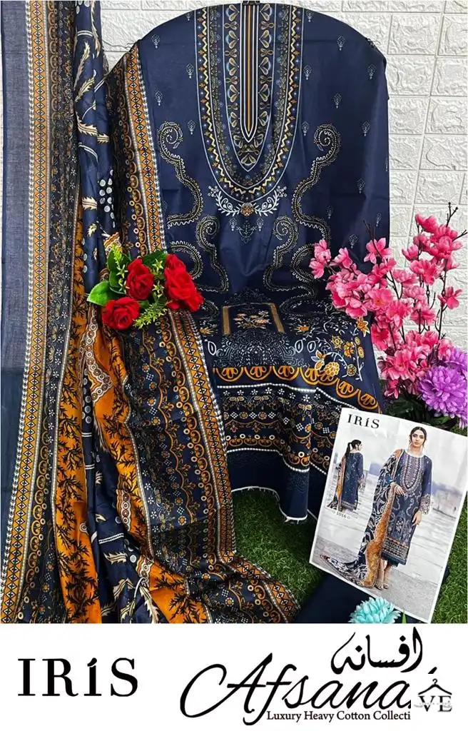 Iris Afsanah Vol 2 Cotton Wholesale Pakistani Salwar Suit Catalog 10 Pcs. We deal in Kurtis, Sarees, Dresses Materials, Leggings, and Designer Salwar Kameez.