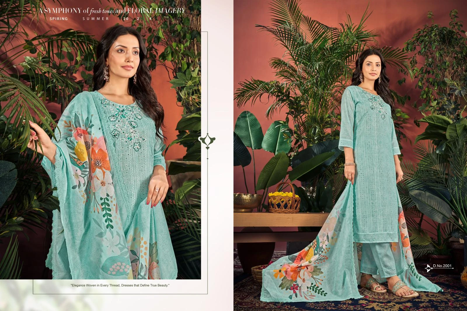- Work: Digital print with four-side Chikan work lace.