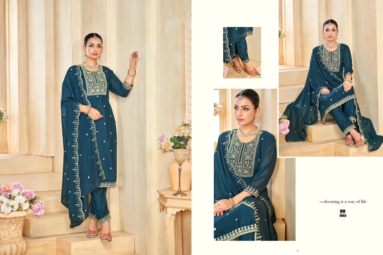 | Dupatta | Georgette Shimmer with Full Work Coding Sequence with Scallop |