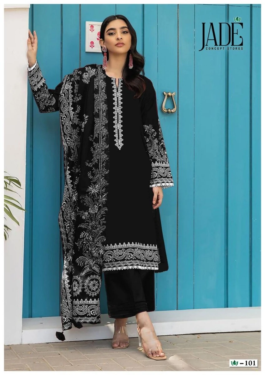 Jade Bin Saeed Black and White Lawn Cotton Wholesale Pakistani Salwar Suit Catalog